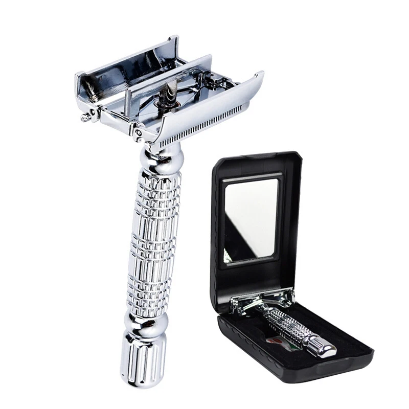 Парикмахерская бритва лезвие безопасной бритвы с двойным лезвием, закручивающийся, Т-образный, унисекс, 1 Дорожный Чехол с зеркалом