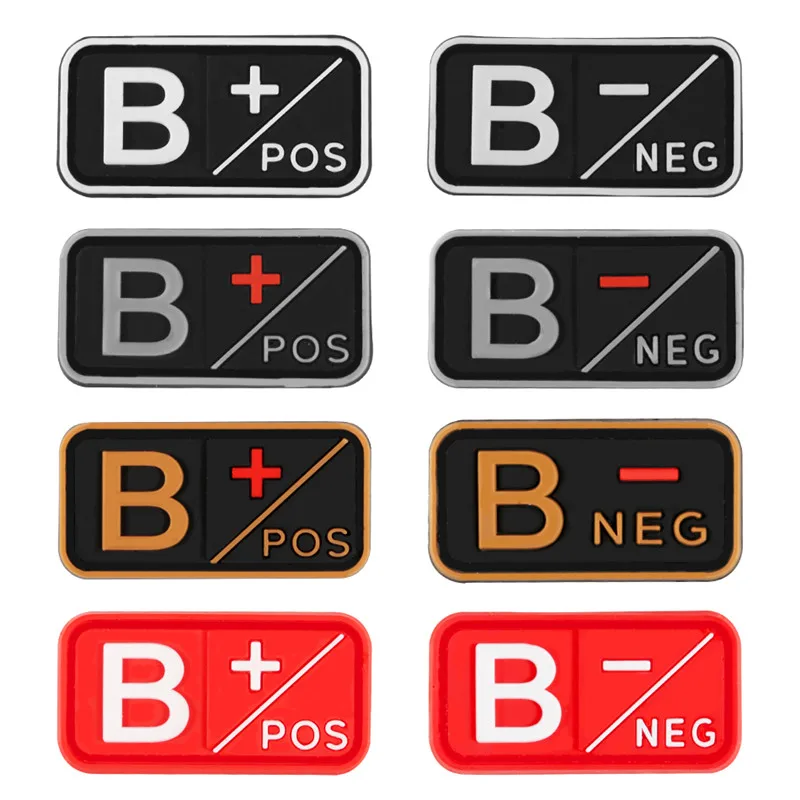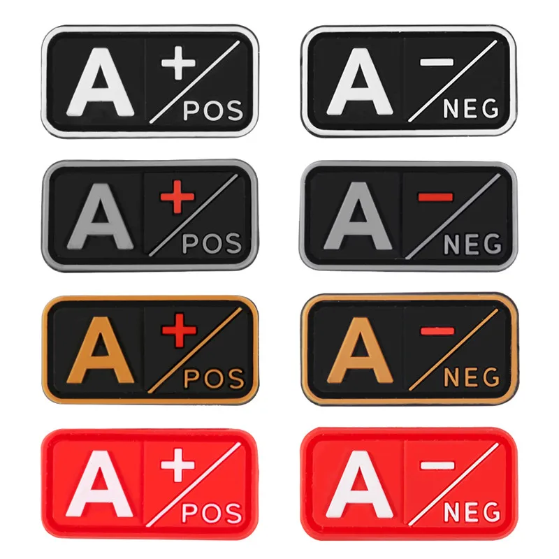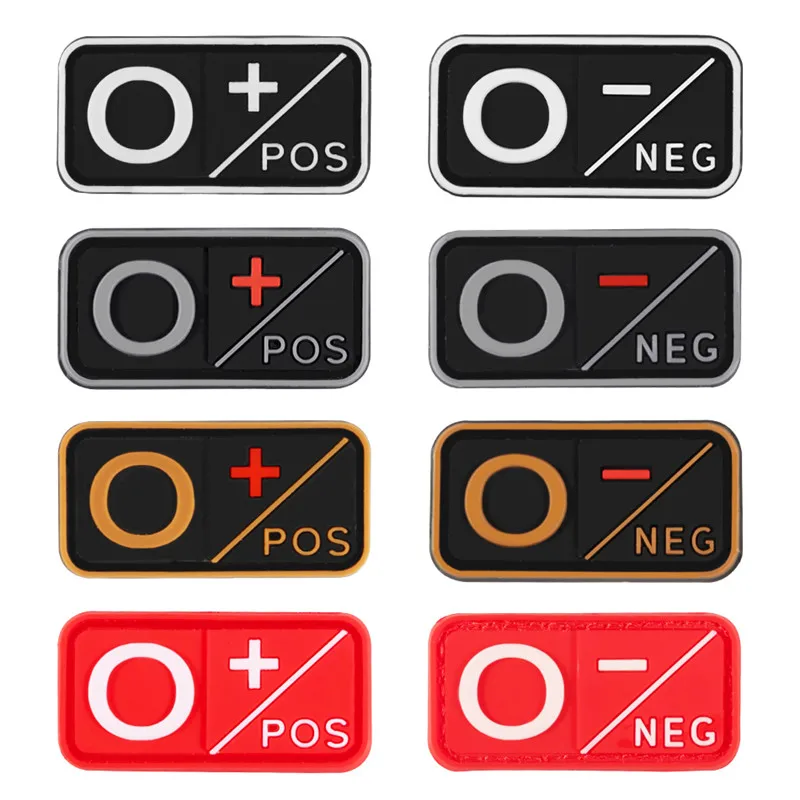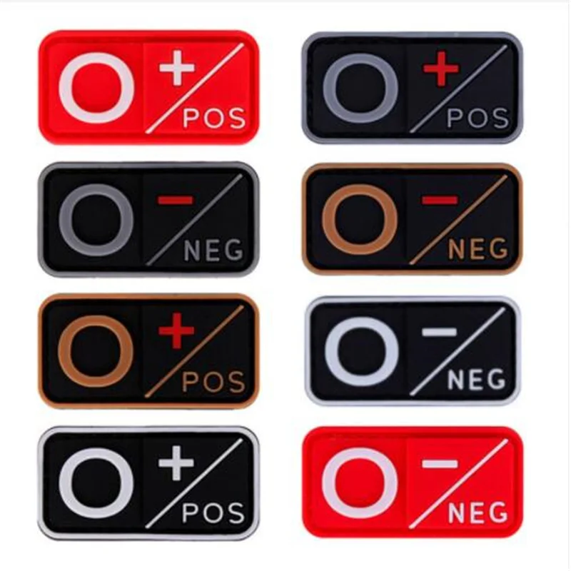 3D ПВХ A + B + AB + O + Положительный POS A- B- AB- O-отрицательный NEG Тип крови, групповой патч для одежды, военная резиновая деталь и петля