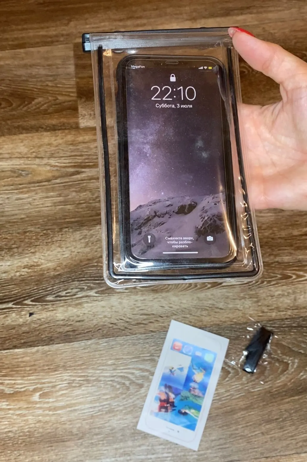Хорошая вместительная крышка, удобно пользоваться в воде, тест с погружением в ванну прошел успешно. Кружево в комплекте. Вы можете плавать с телефоном и не беспокоиться о том, что он намокнет. до Москвы 2,5 недели