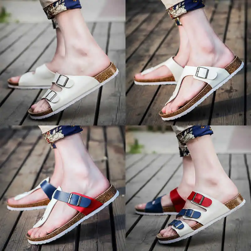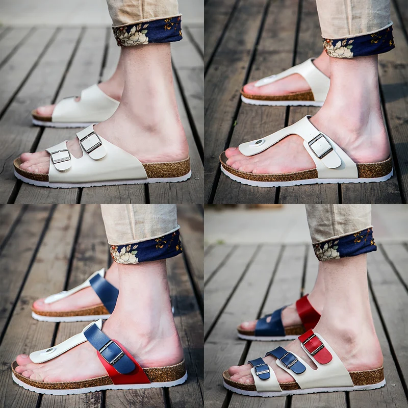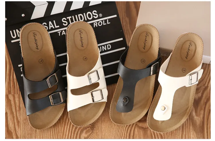 Шлепанцы мужские пляжные, пробковые, повседневные, плоская подошва, летние тапочки, большие размеры 35-46