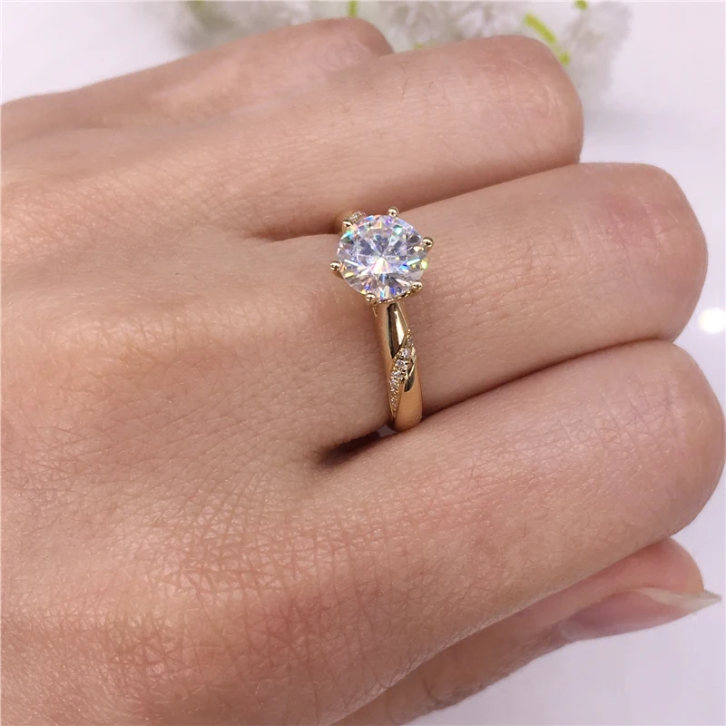 Кольцо из чистого розового золота 18 К с муассанитом, классическое круглое Ювелирное Украшение с бриллиантом 1 карат 2 карата 3 карата, обручальное