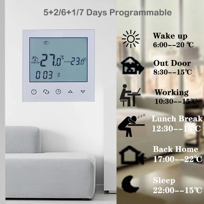 Умный комнатный термостат для электрического напольного отопления и водного напольного отопления температурный контроллер 220-240 В