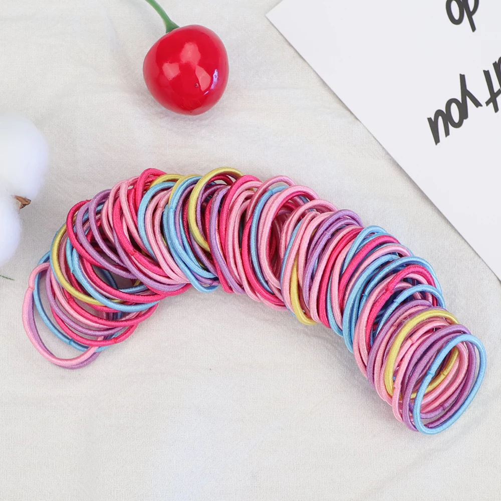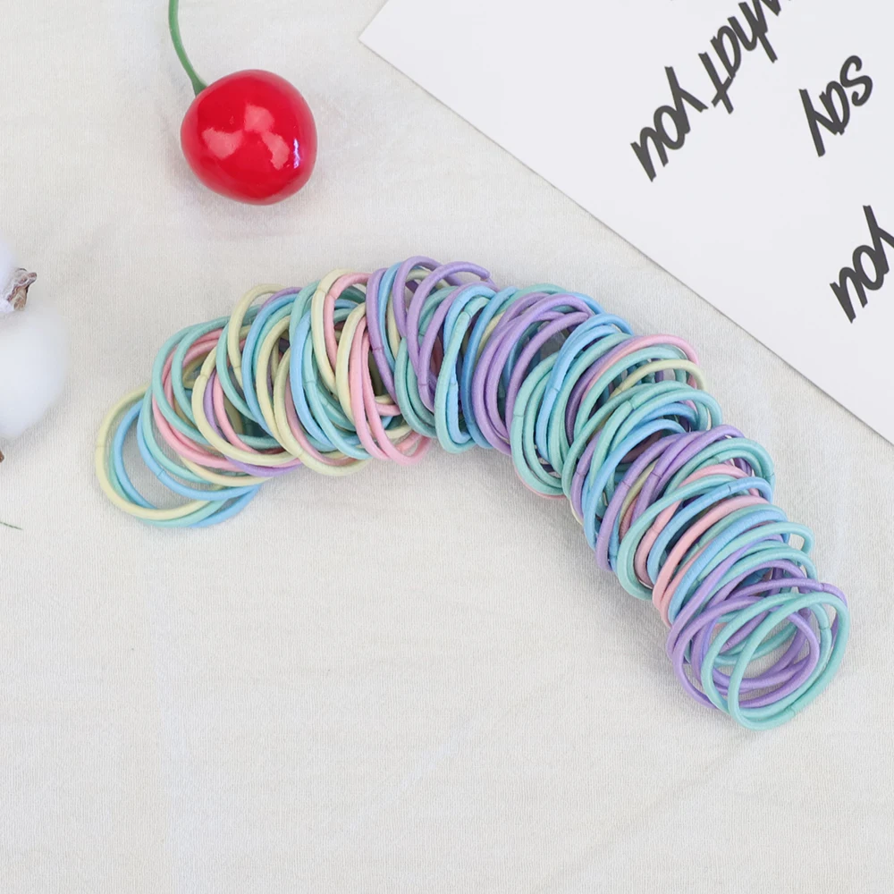 100 шт.лот милая маленькая девочка держатель для волос для конского хвоста аксессуары для волос тонкие эластичные резинки для детей красочные резинки для волос