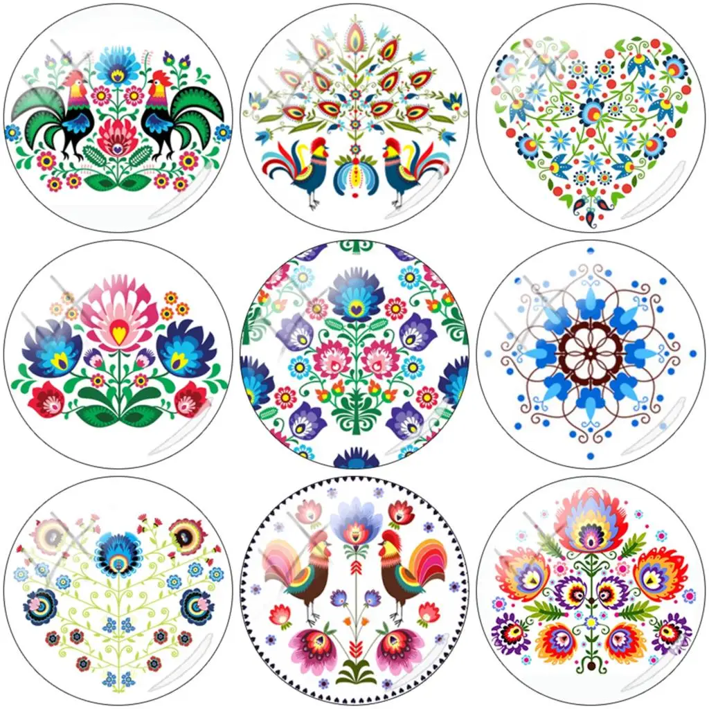 JWEIJIAO Богемия польский народное искусство узоры печати 12 мм/15 мм/16 мм/18 мм/20 мм/25 мм стекло кабошон демонстрация плоской задней делая результаты PF87