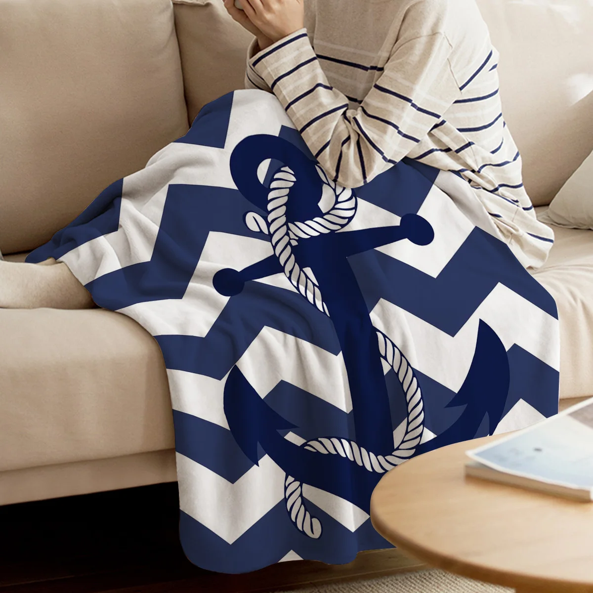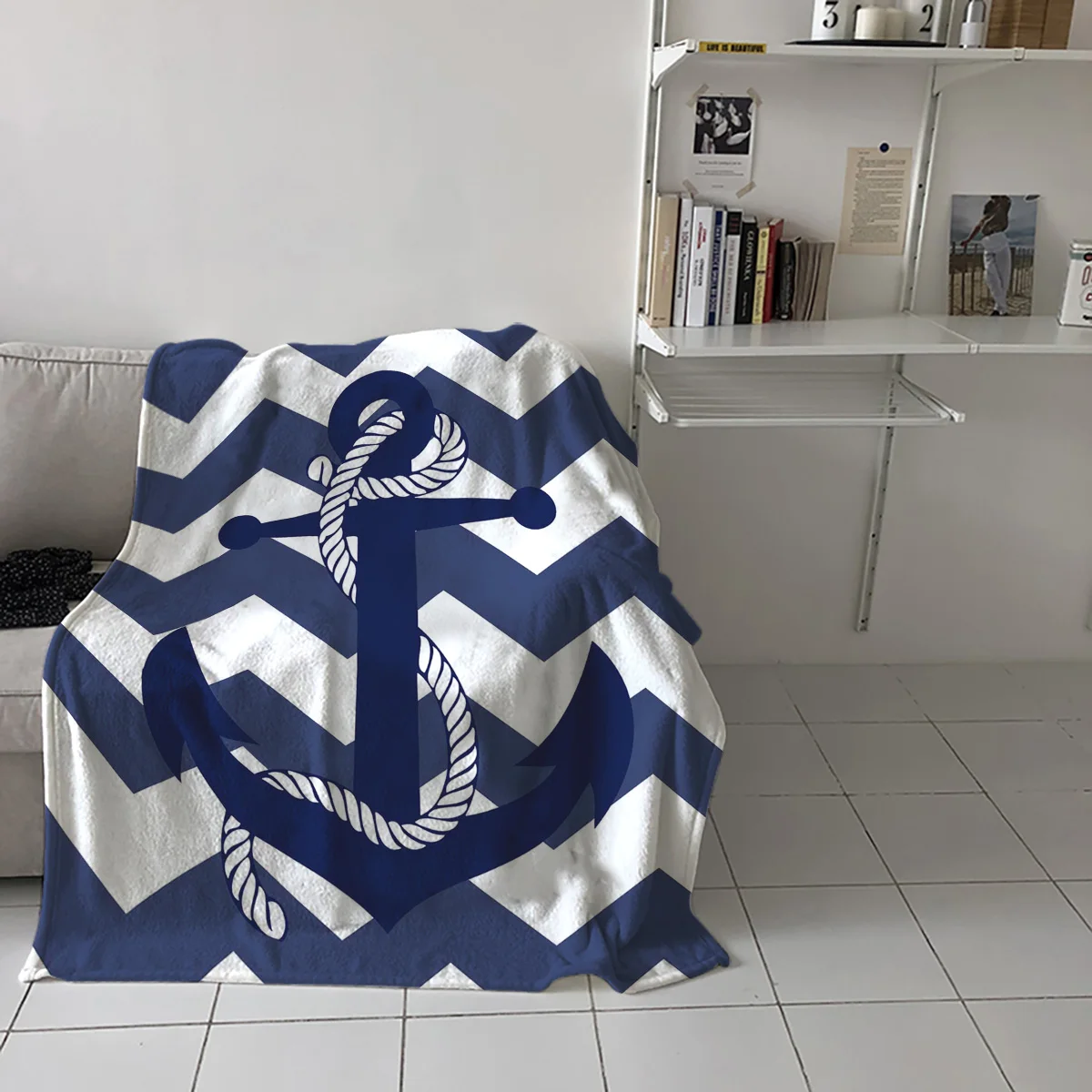 Плед с якорями, покрывало для кровати, Фланелевое флисовое декоративное Флисовое одеяло для глубокого сна, уютное покрывало для столовой, спальни, кушетки