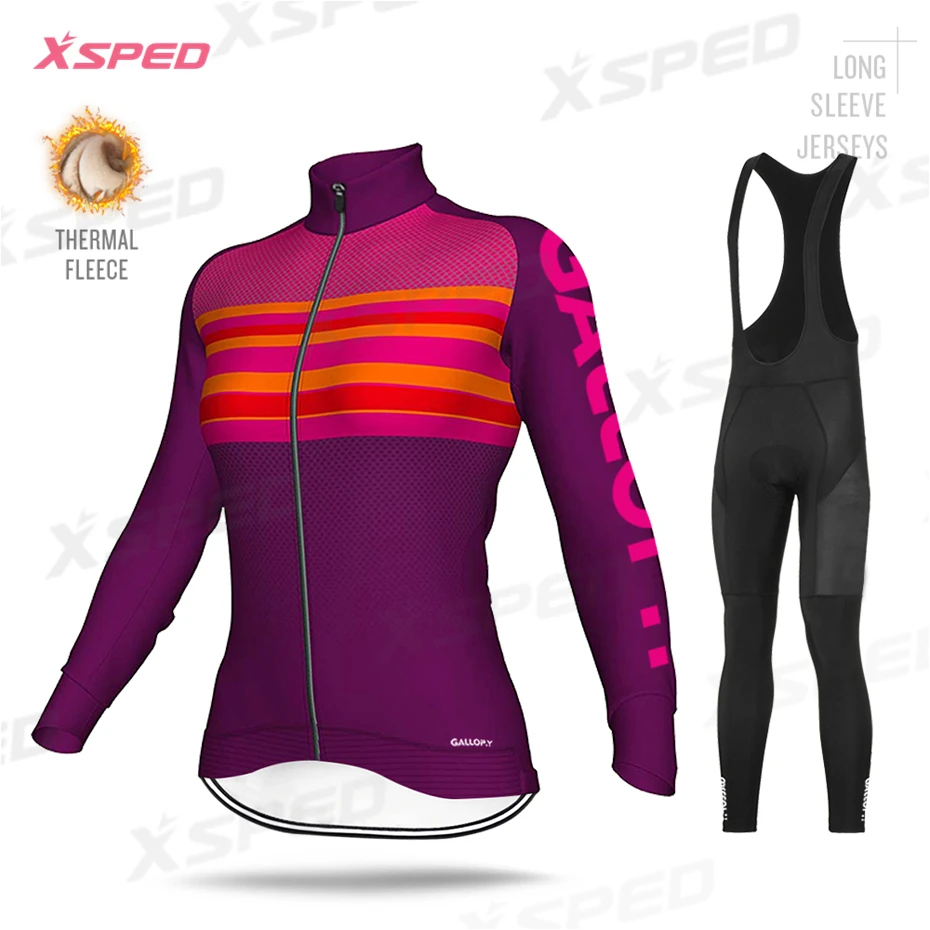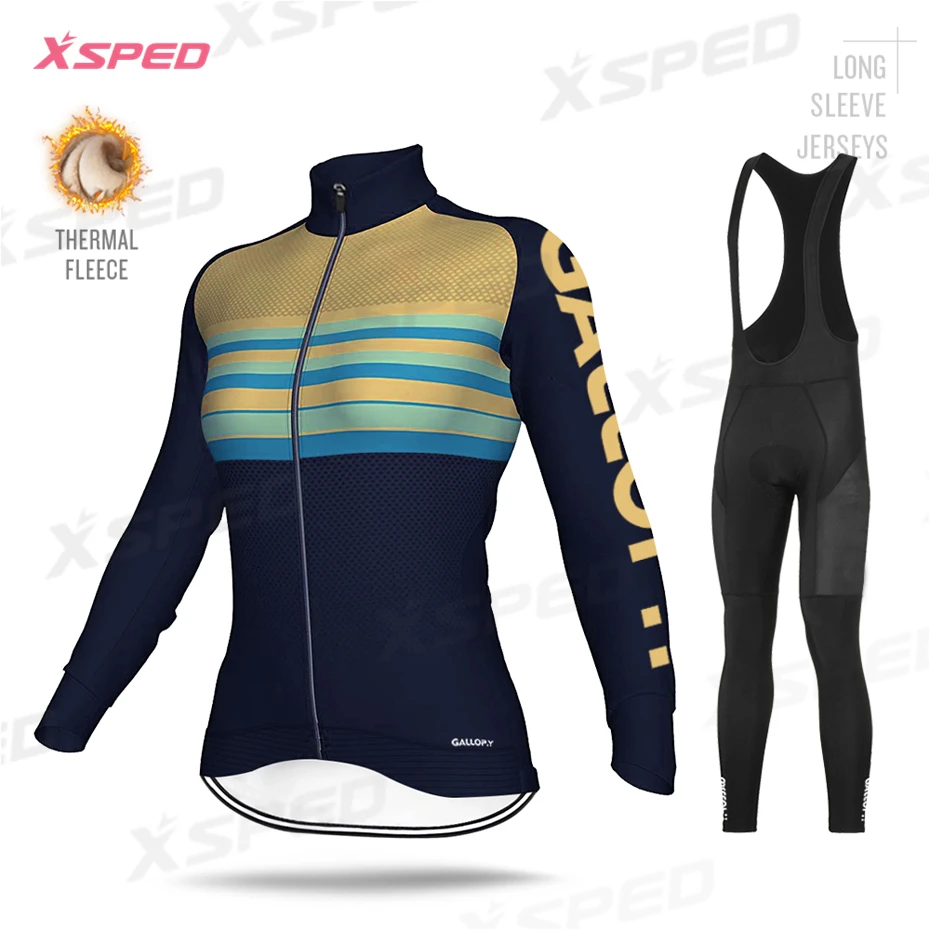 Новинка, Женский комплект велосипедной одежды из Джерси, зимняя одежда для велоспорта, теплый флисовый костюм с длинным рукавом, женская модная форма для дорожного велосипеда, уличная куртка