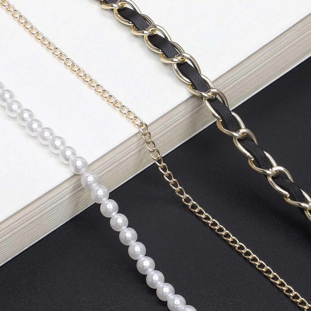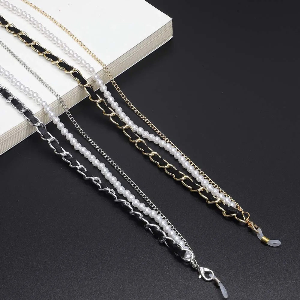 1 шт. Новое поступление, модная жемчужная кожаная цепочка для очков, трендовая Роскошная золотистая Серебристая оправа для очков, ремешок на ремне, цепочка на шею
