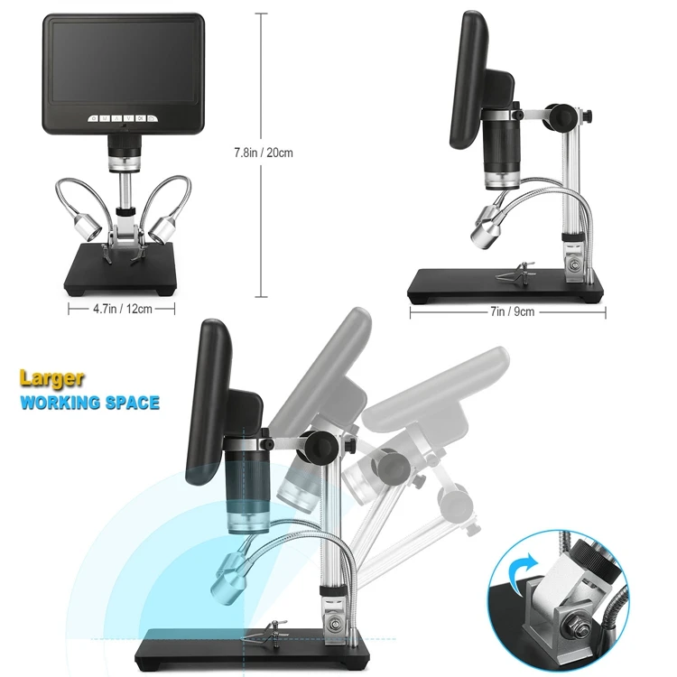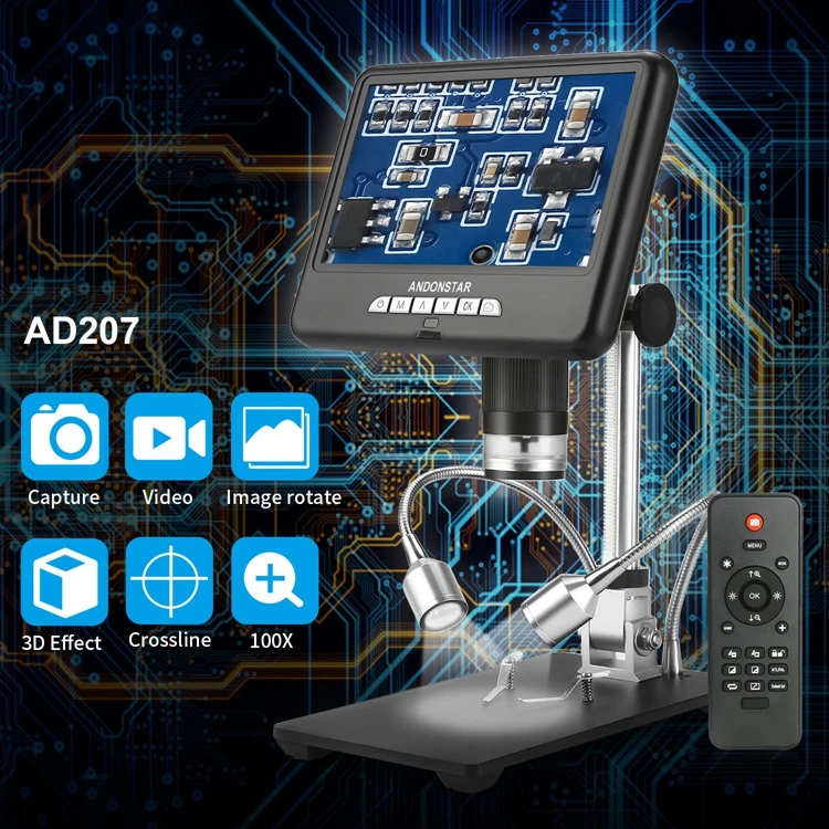 Andonstar 7-дюймовый цифровой микроскоп 100X HD 3D видео микроскопы ювелирные изделия печатная плата ремонт телефона паяльный инструмент изображение Поворотная Лупа