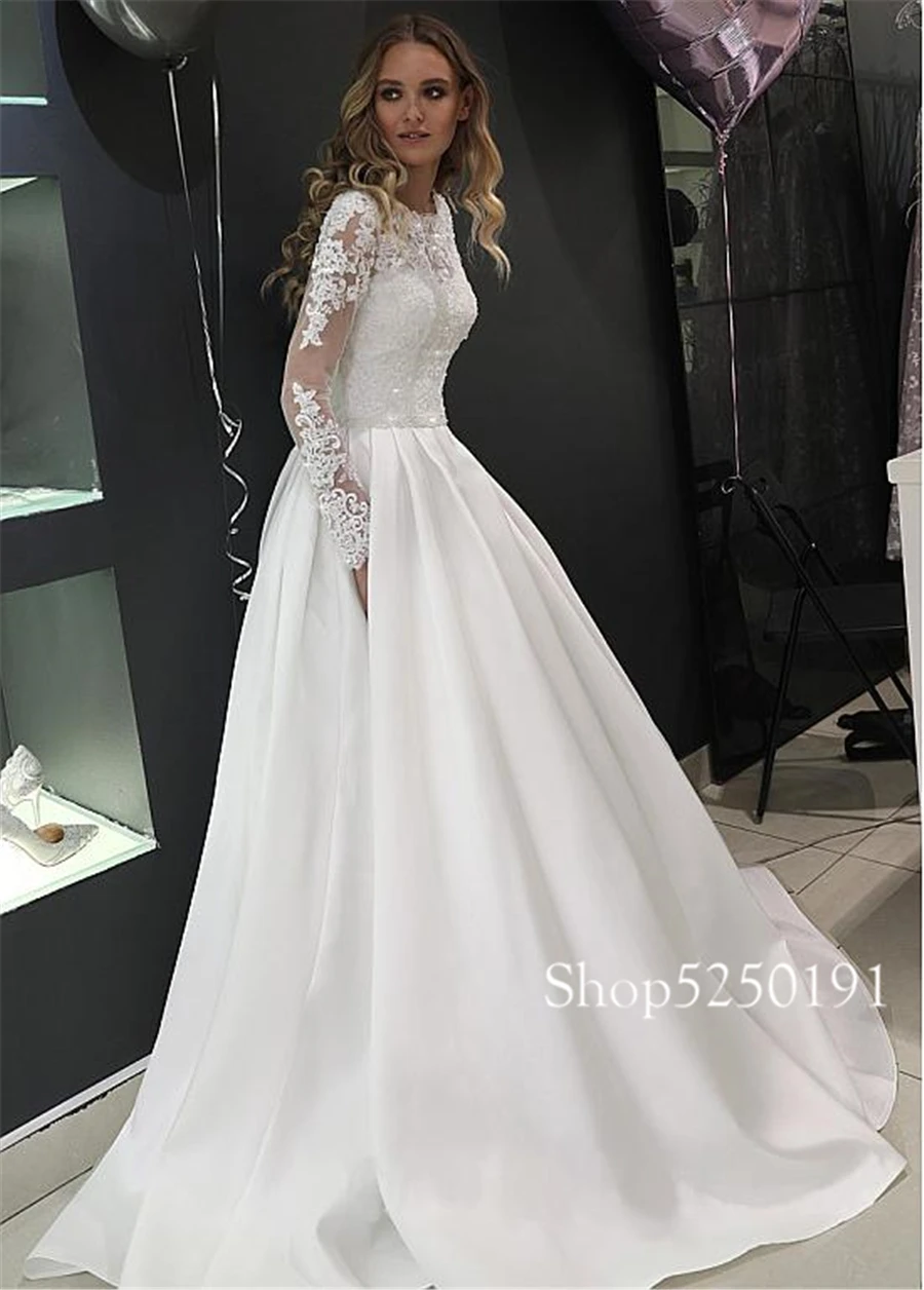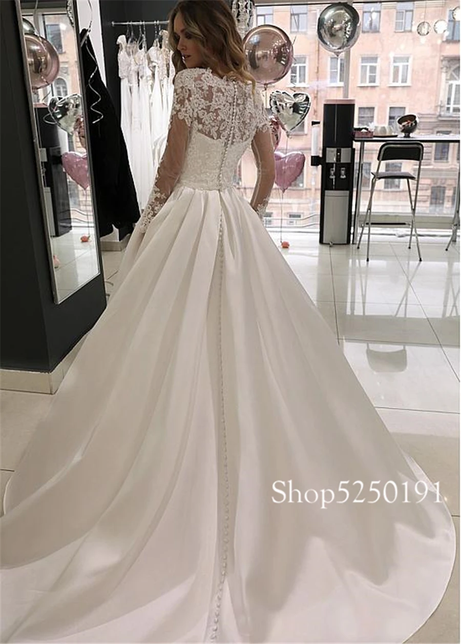 Великолепное Тюлевое ТРАПЕЦИЕВИДНОЕ свадебное платье с высоким вырезом, свадебное платье с длинным рукавом и кристаллами, свадебные платья на пуговицах