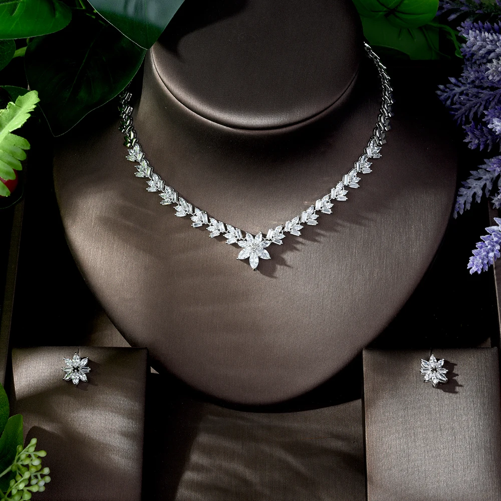 Роскошные комплекты из серег и ожерелья HIBRIDE с прозрачными кристаллами циркония, комплект свадебных украшений, аксессуары для свадебного платья N-759