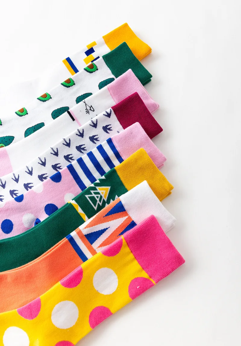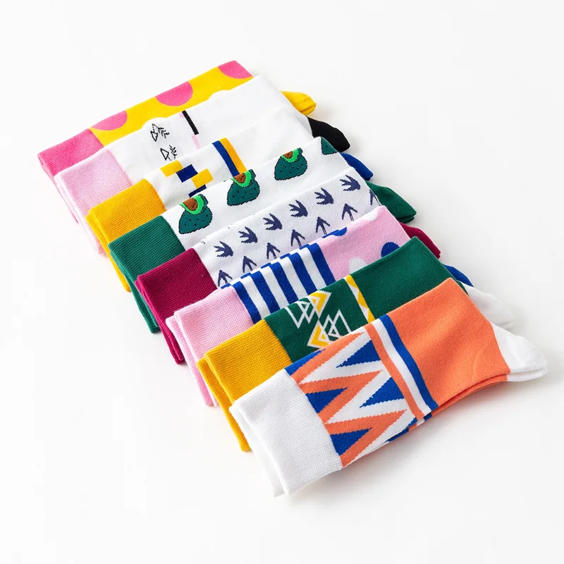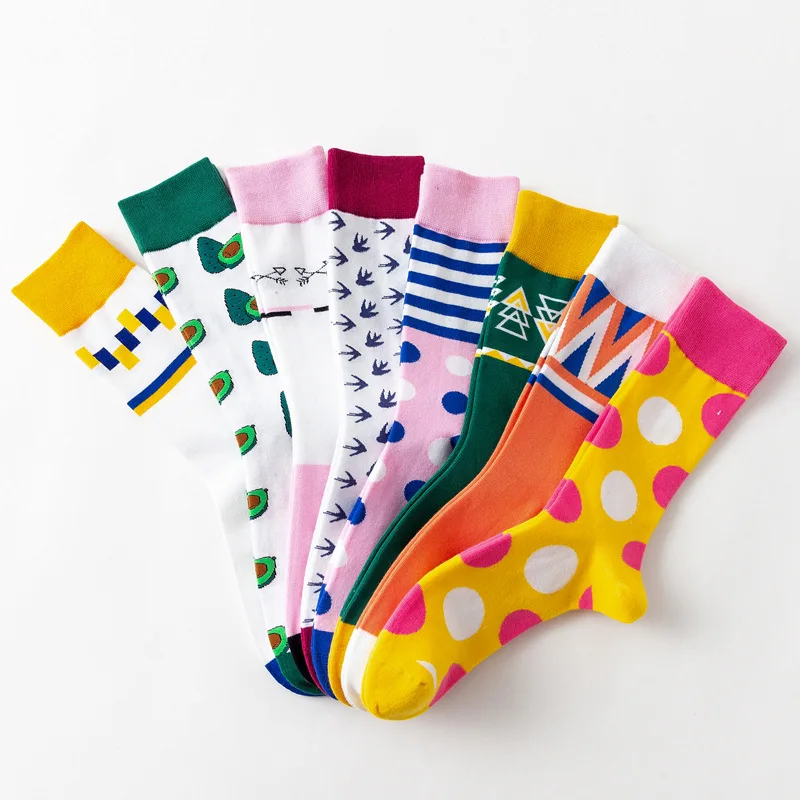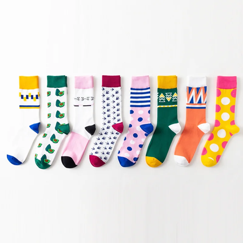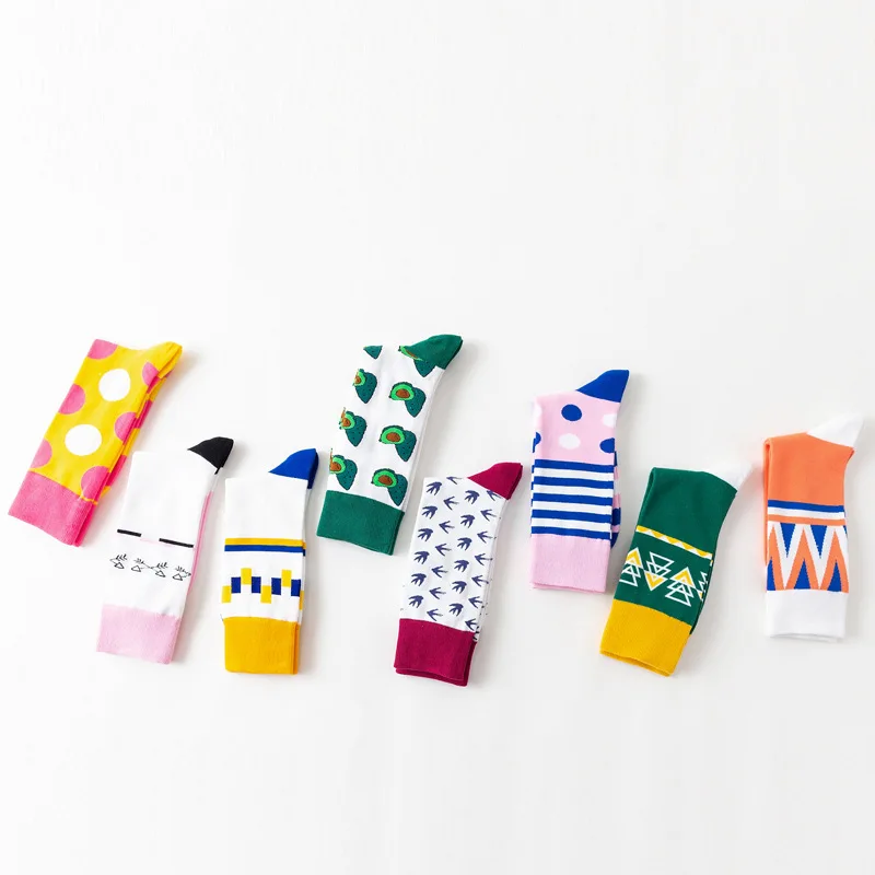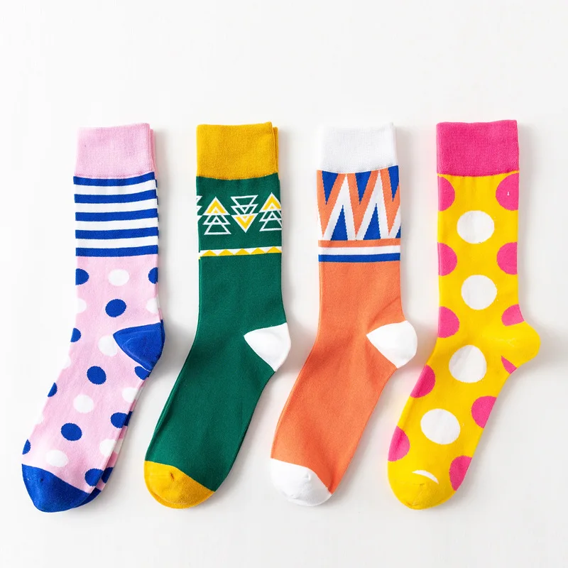 Мужские и женские Геометрические Носки Happy, цветные длинные носки с принтом, трендовые повседневные носки унисекс в подарок, 4 парупак.