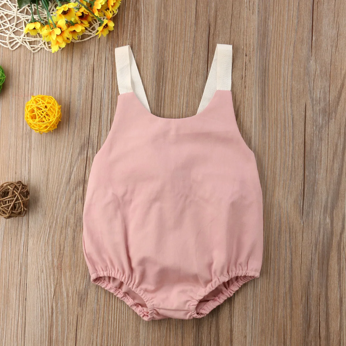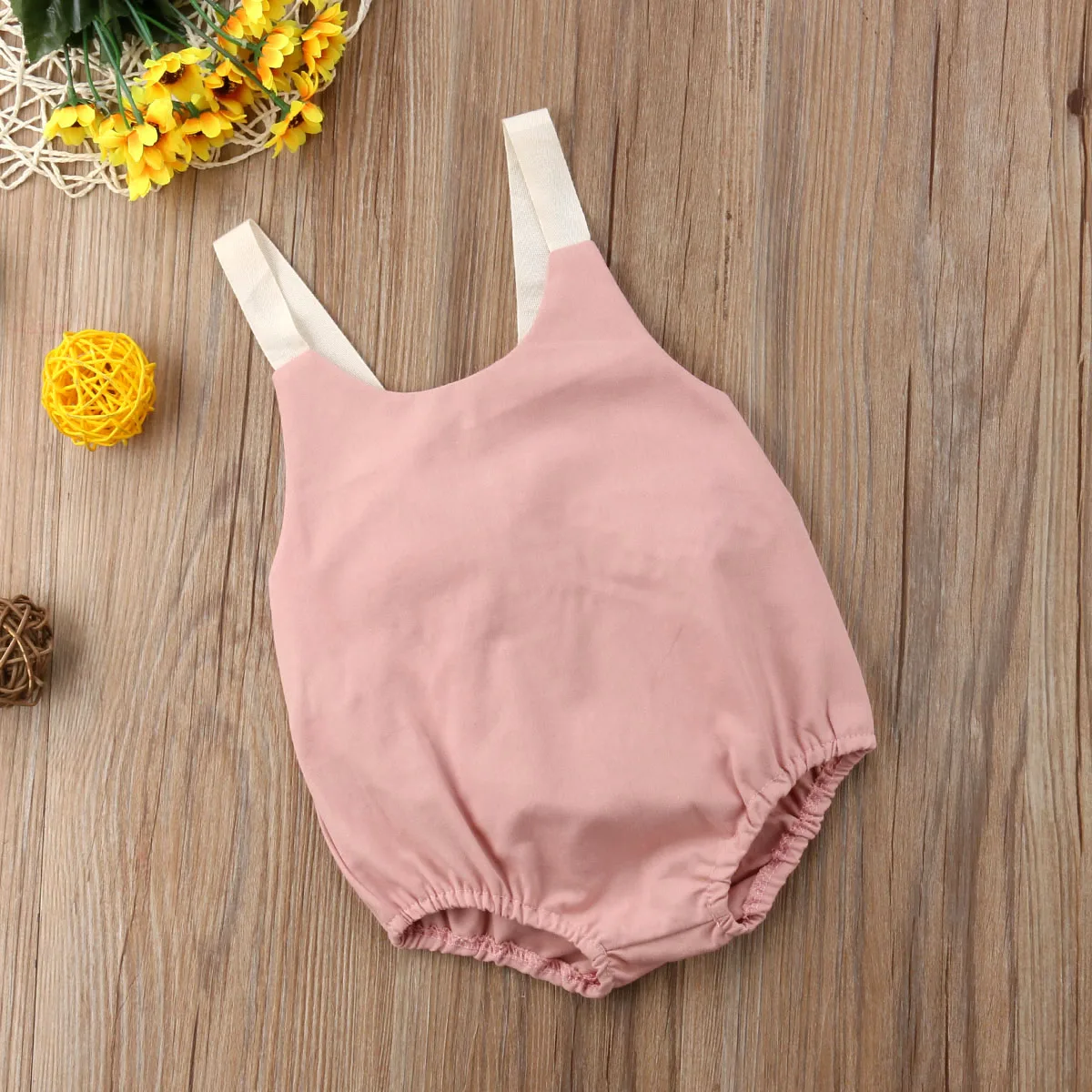 Комбинезон для новорожденных девочек от 0 до 24 месяцев, однотонный удобный хлопковый комбинезон без рукавов с бантом, Детский костюм пляжного типа для девочки
