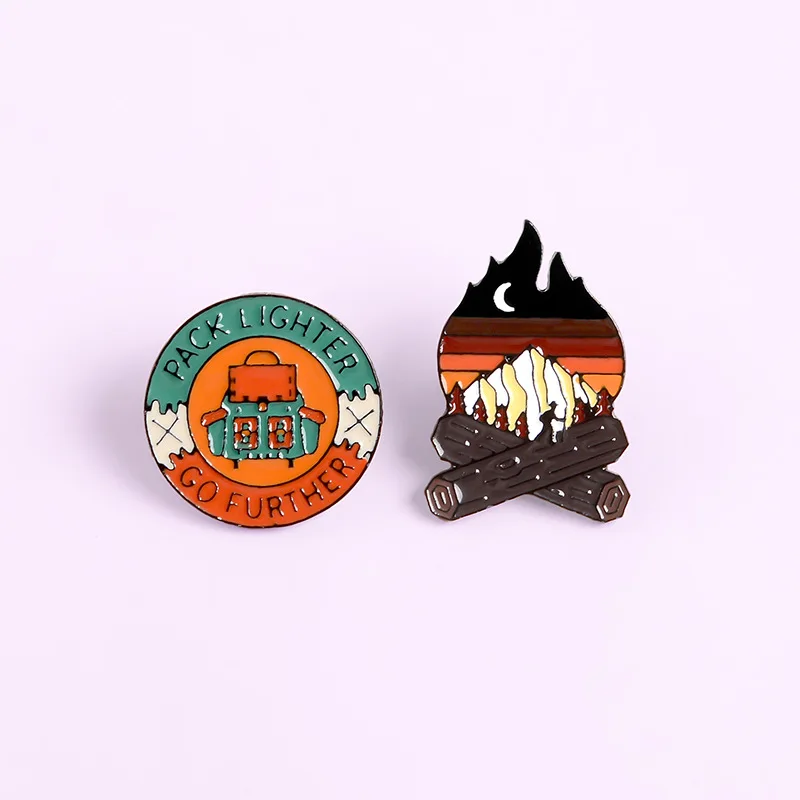 Эмалированная булавка для кемпинга с изображением костра в рюкзаке,...