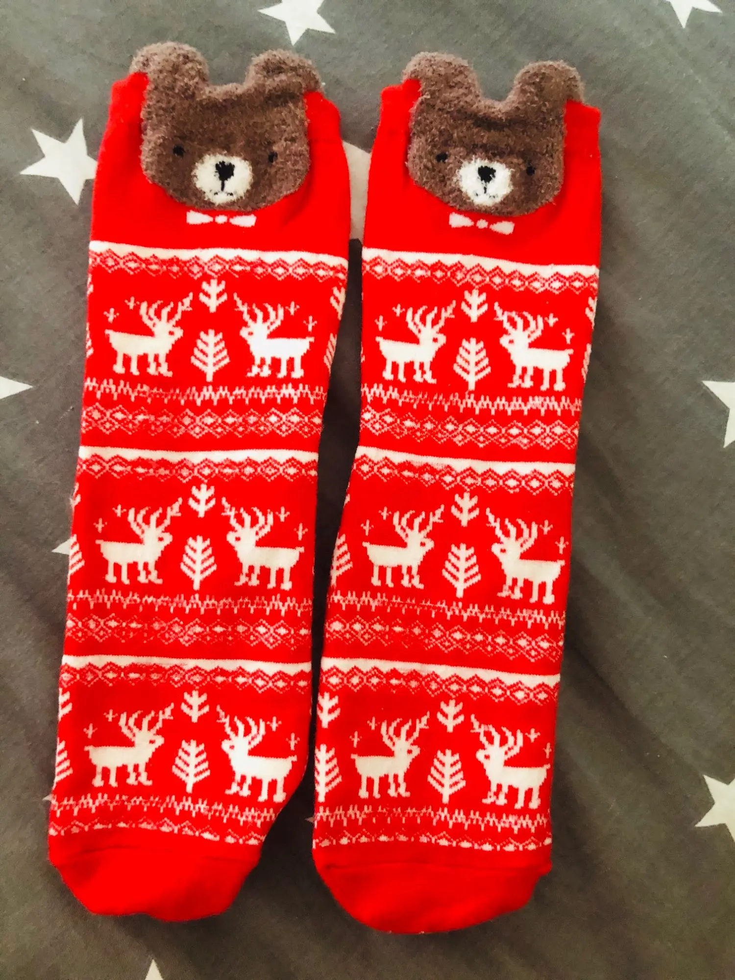 ✅ Посылка пришла очень быстро за 2 недели. ✅ Брала за 35,91 руб. ✅ Мягкие новогодние носочки подходят на 38 размер. ✅ Милый мишка на резинке носка.