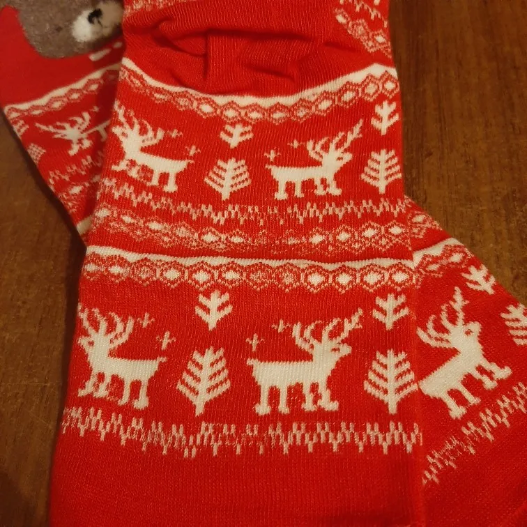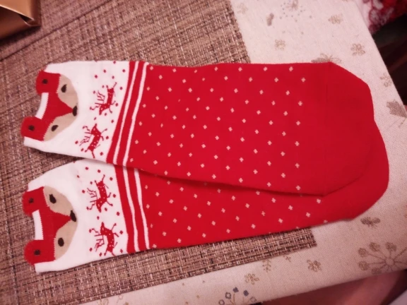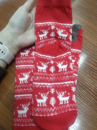 Классные носочки, мягкие, материал тонковат и скорее синтетика, но для новогоднего праздника то, что нужно! Доставка быстрая, спасибо