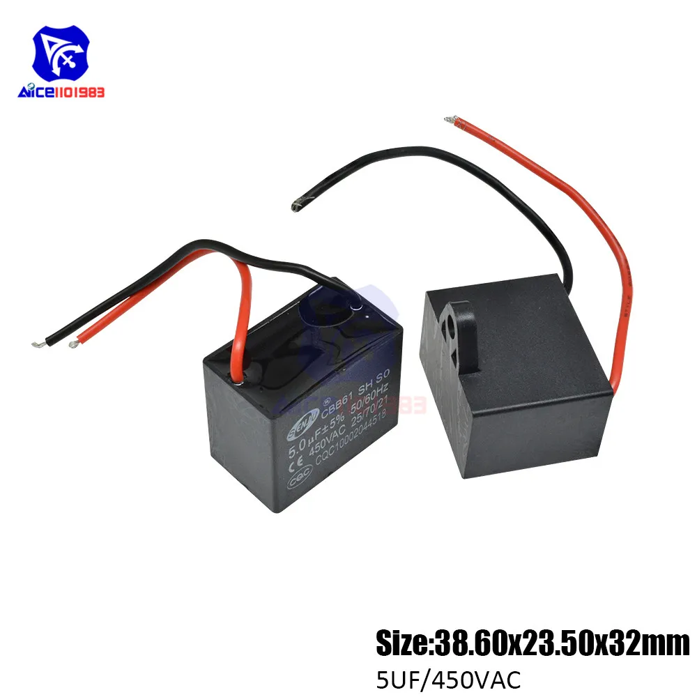 Двухжильный конденсатор для двигателя вентилятора кондиционера, 450 в переменного тока, 5 мкФ, 5%, емкость 5060 Гц, diymore CBB61