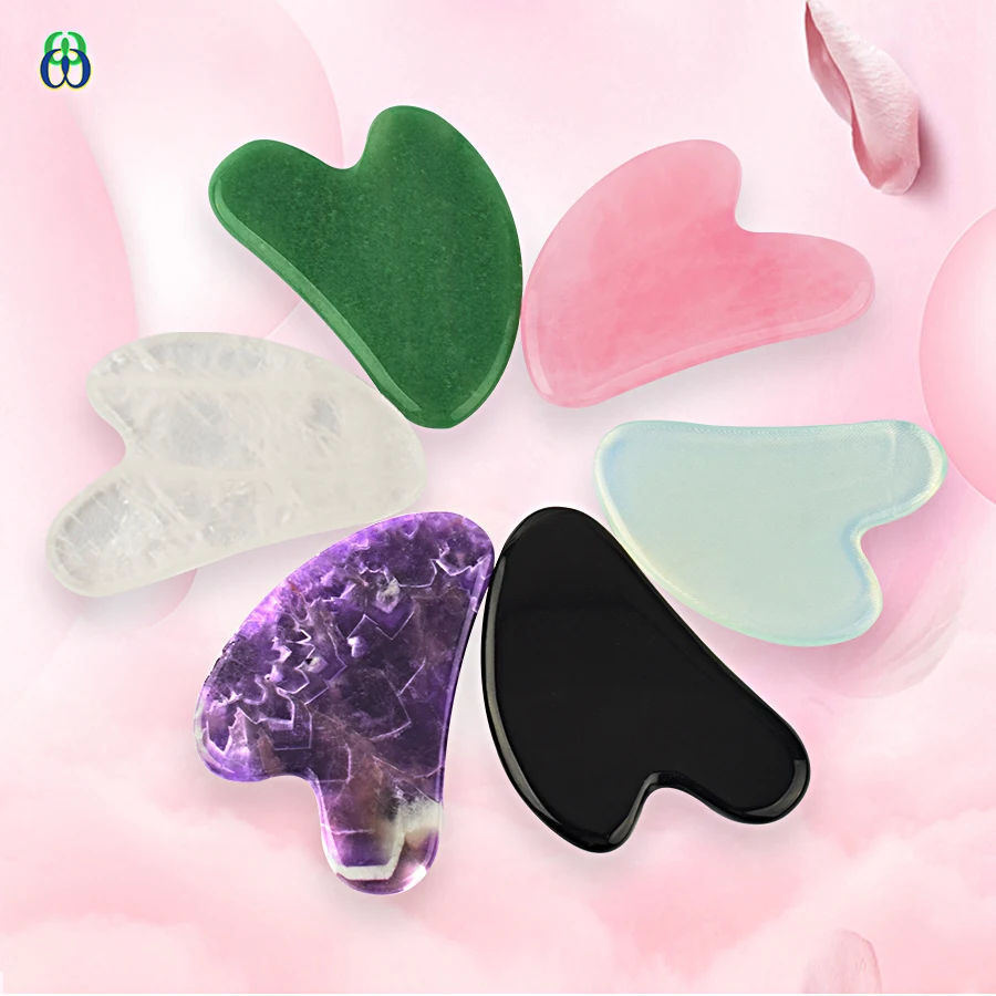 Нефритовая доска Guasha из разных природных камней, скребок для лица, шеи, спины, тела, иглоукалывание, терапия давлением