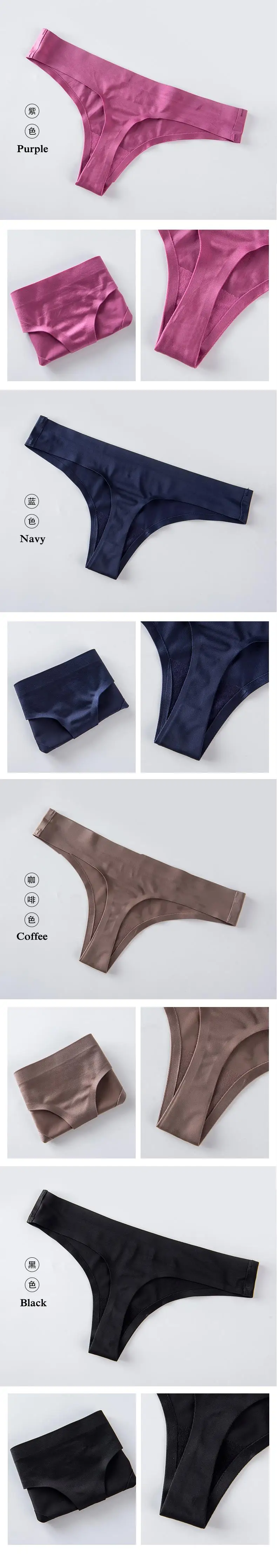 Твердые Цвет стринги Для женщин сексуальные трусики без швов, женск...