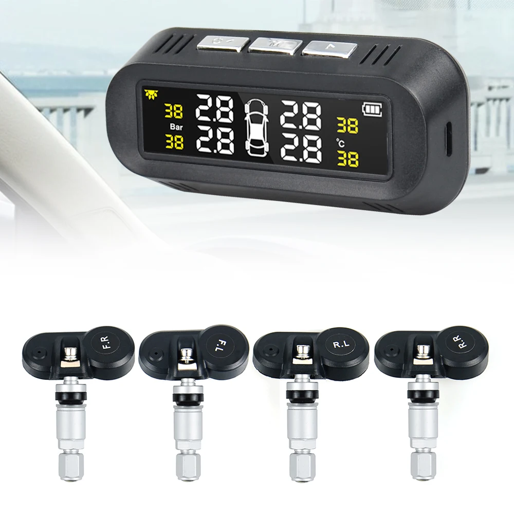 Система контроля давления в шинах, TPMS с солнечной батареей, предупреждением о температуре и 4 датчиками, для экономии топлива