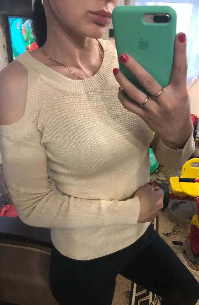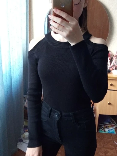 Получила свитер, пришёл достаточно быстро, долго ждать не пришлось, быстрая доставка. На размер 44-46, не длинный, не заправишь в джинсы. Сделано аккуратно, все прошито, ниток нет, мягкий и приятный к телу. Ещё пока не стирола. Выбрала чёрный цвет. Вырезы на плечах обработаны хорошо. Мне показалась, правда, большими. В целом, чудесный свитер!