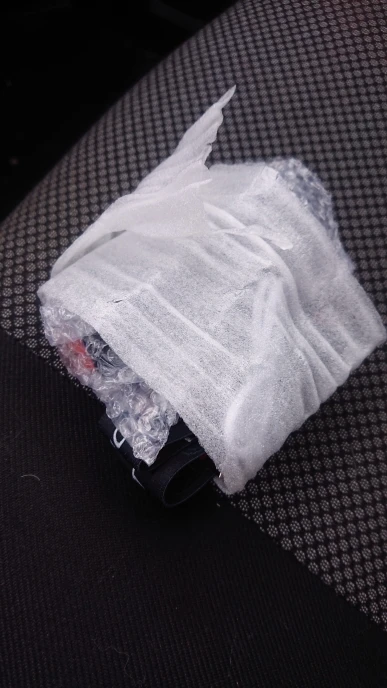 Получил.Всë целое.Крепëж для ремешка хлипковат.Заряжен.Работает.