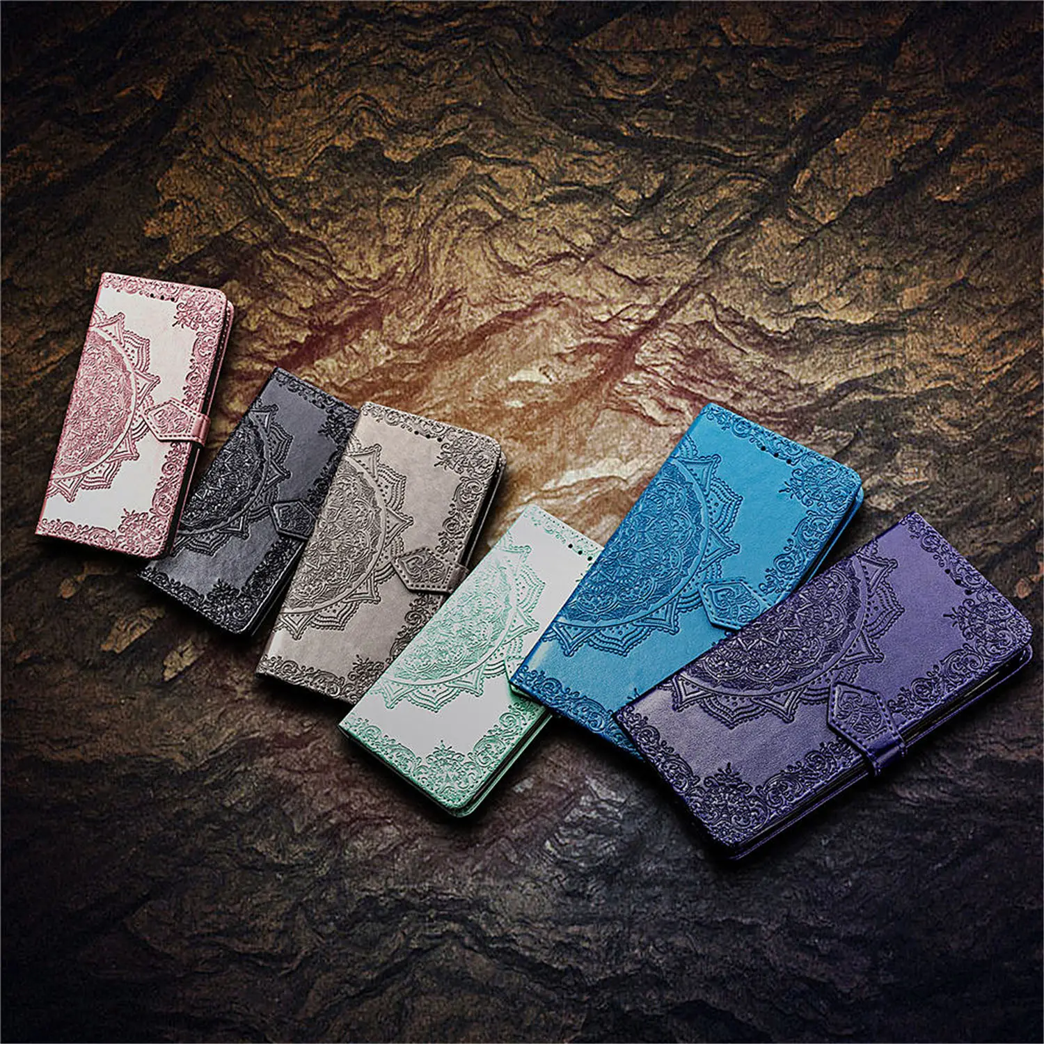 Ретро Роскошные Мандала шаблон кожаный магнитный чехол-книжка с бум...