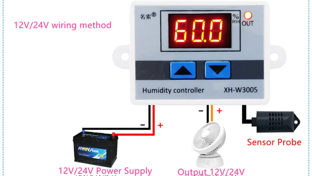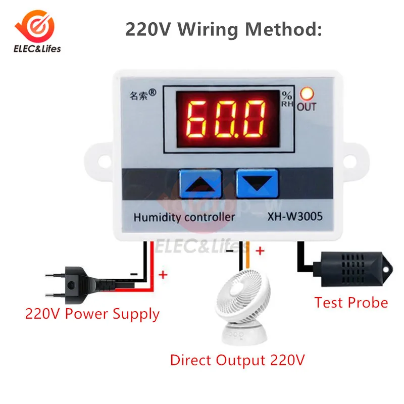 Цифровой контроллер влажности XH-W3005 12 В 24 в 110 В 220 В, регулятор влажности с датчиком влажности