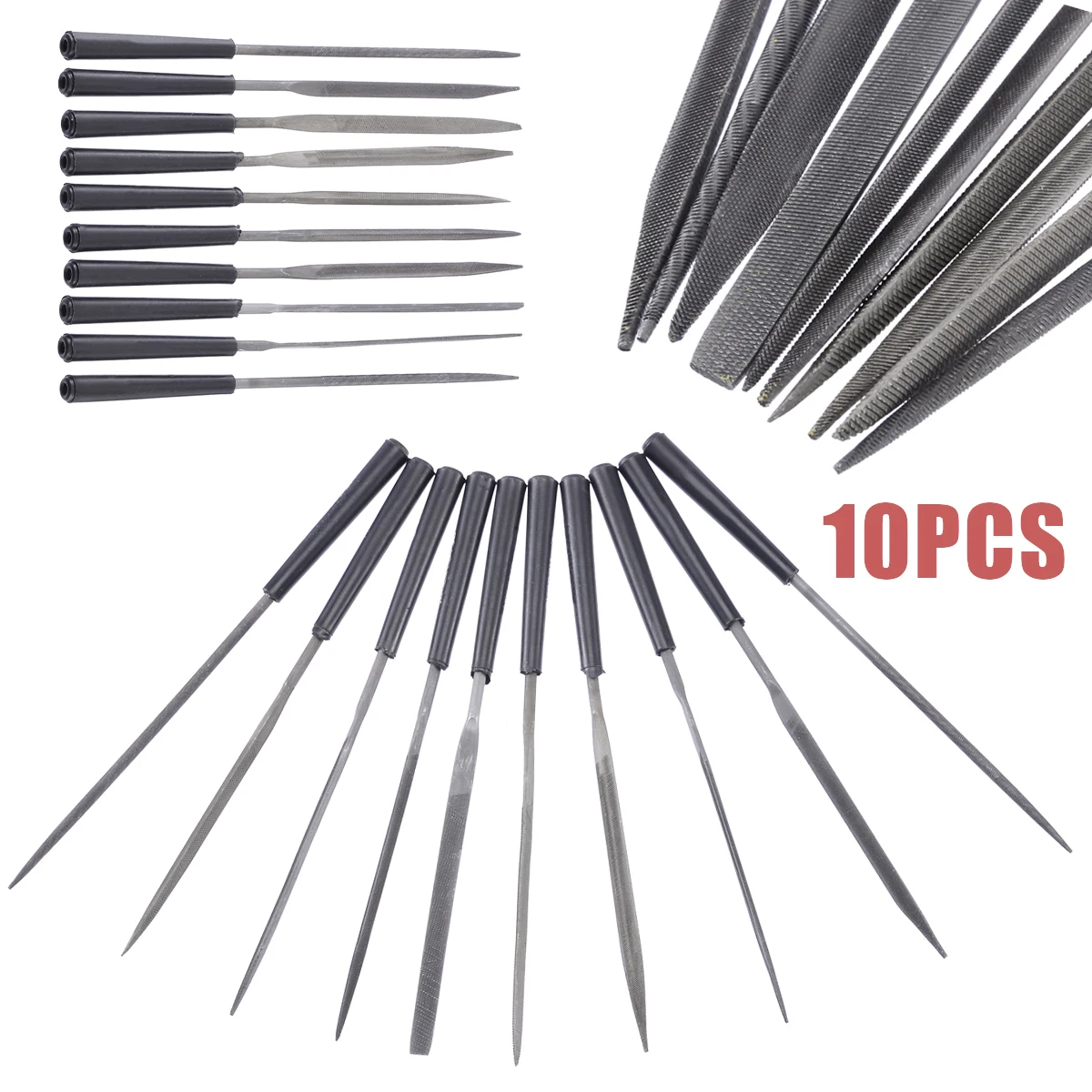 10 шт. игольчатые файлы набор файлов для металлического стекла ювелирный камень, древесина резьба крепежный инструмент для снятия заусенцев