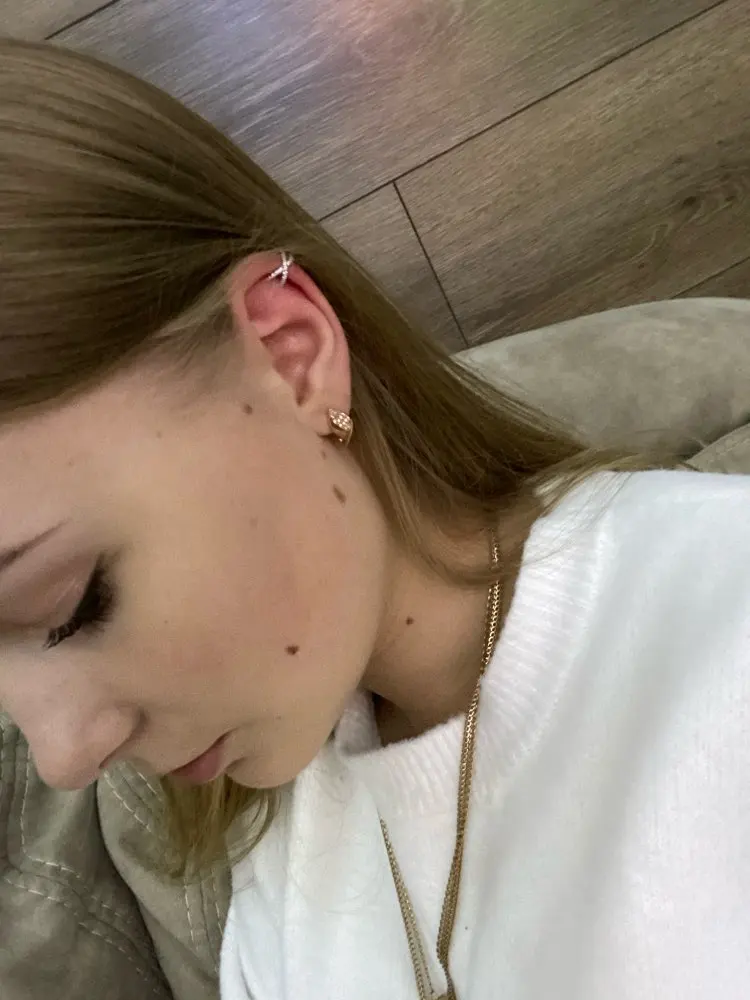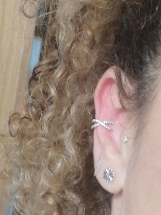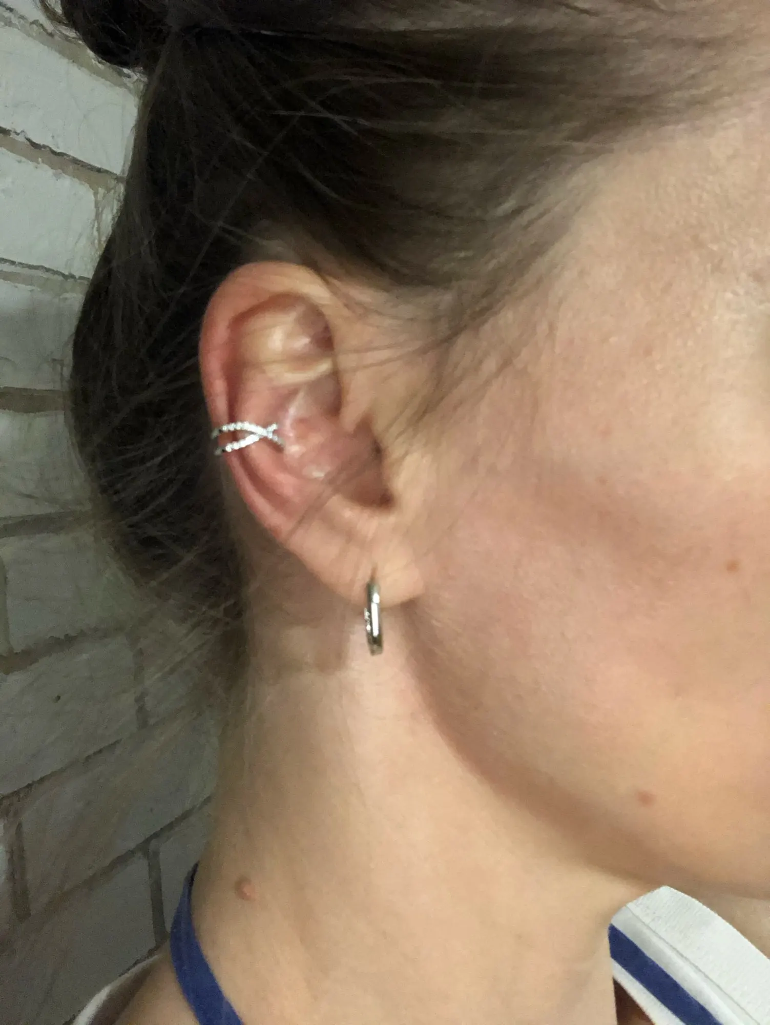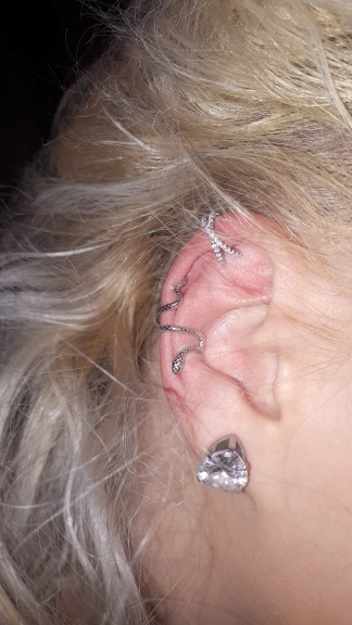 Очень красивая сережка, надевается легко, проходила весь день, не чувствуя ее, и шапку носила, не спадает , смотрится круто, очень аккуратно сделана