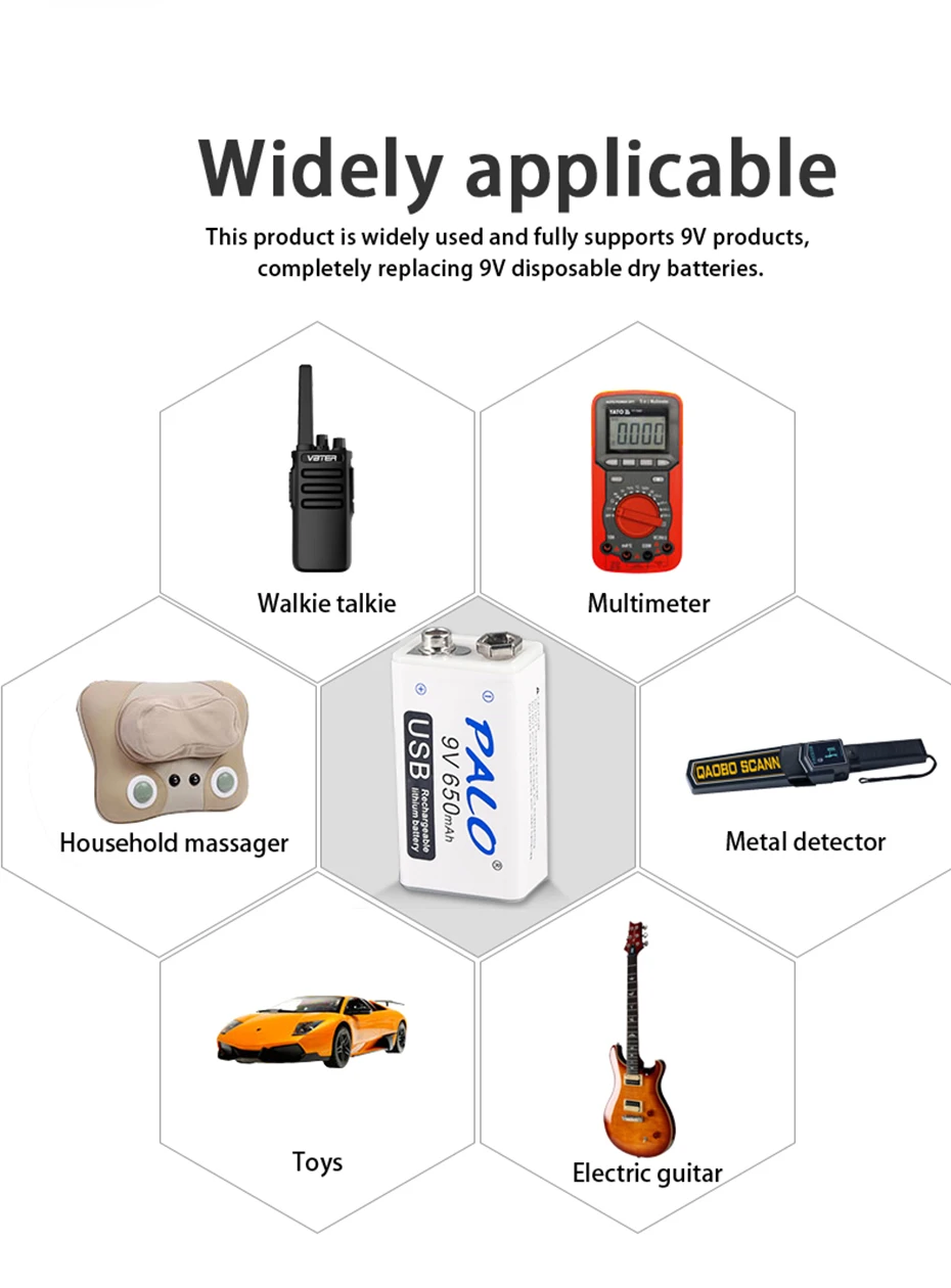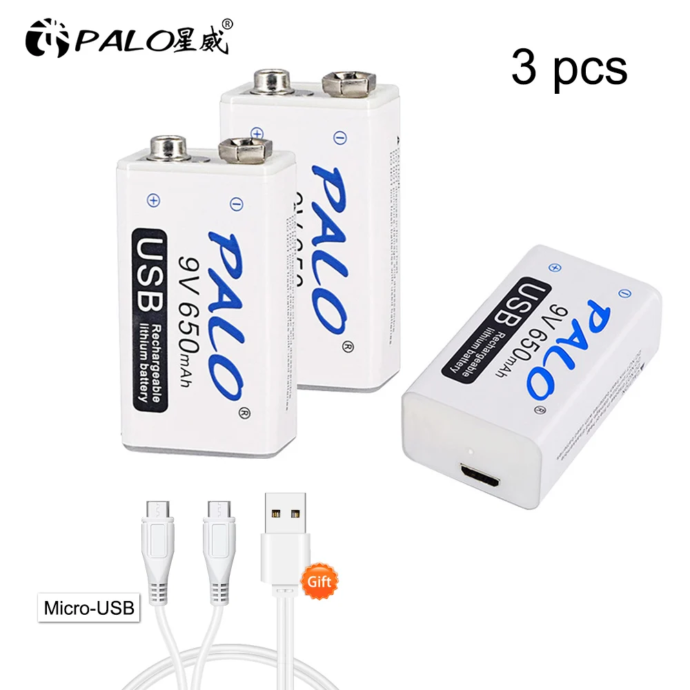 Литиевые аккумуляторы PALO, 9 В, USB, перезаряжаемая батарея 650 мА...