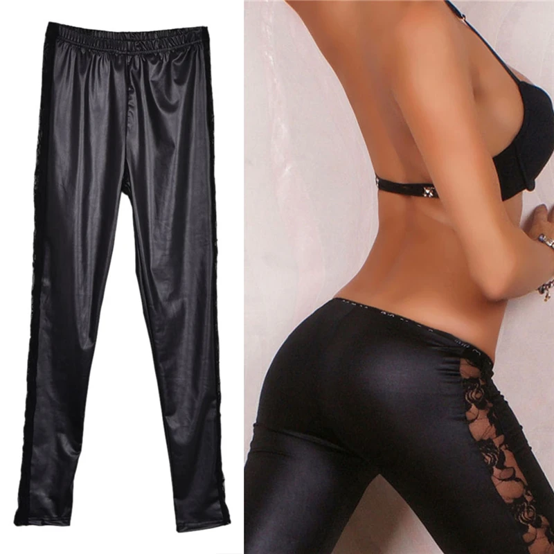 Женские облегающие леггинсы из искусственной кожи, высокая эластичность