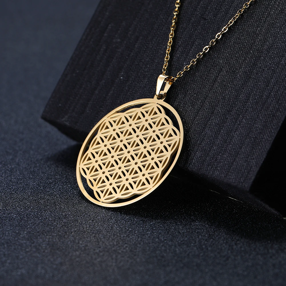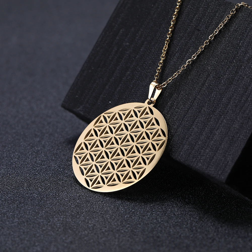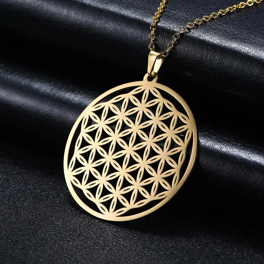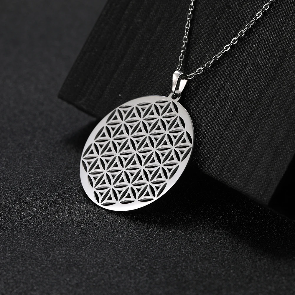 Ожерелье из нержавеющей стали, с изображением цветов жизни, мандала, руны, буддийские украшения, Сакральная Геометрия