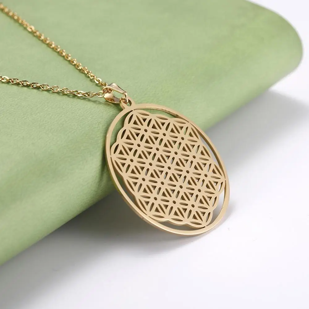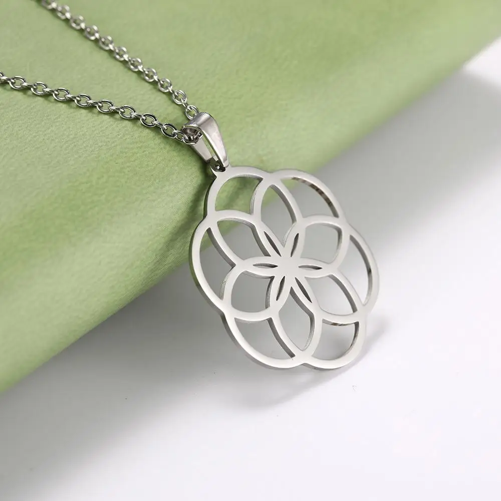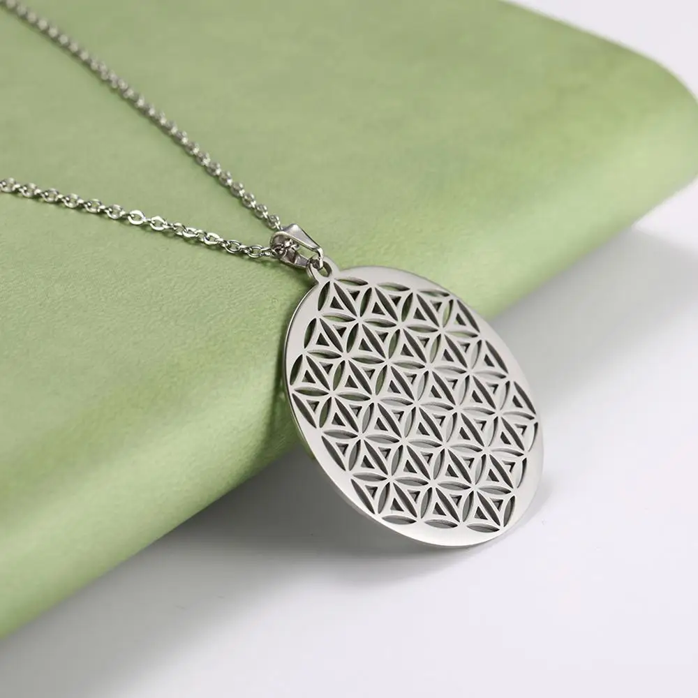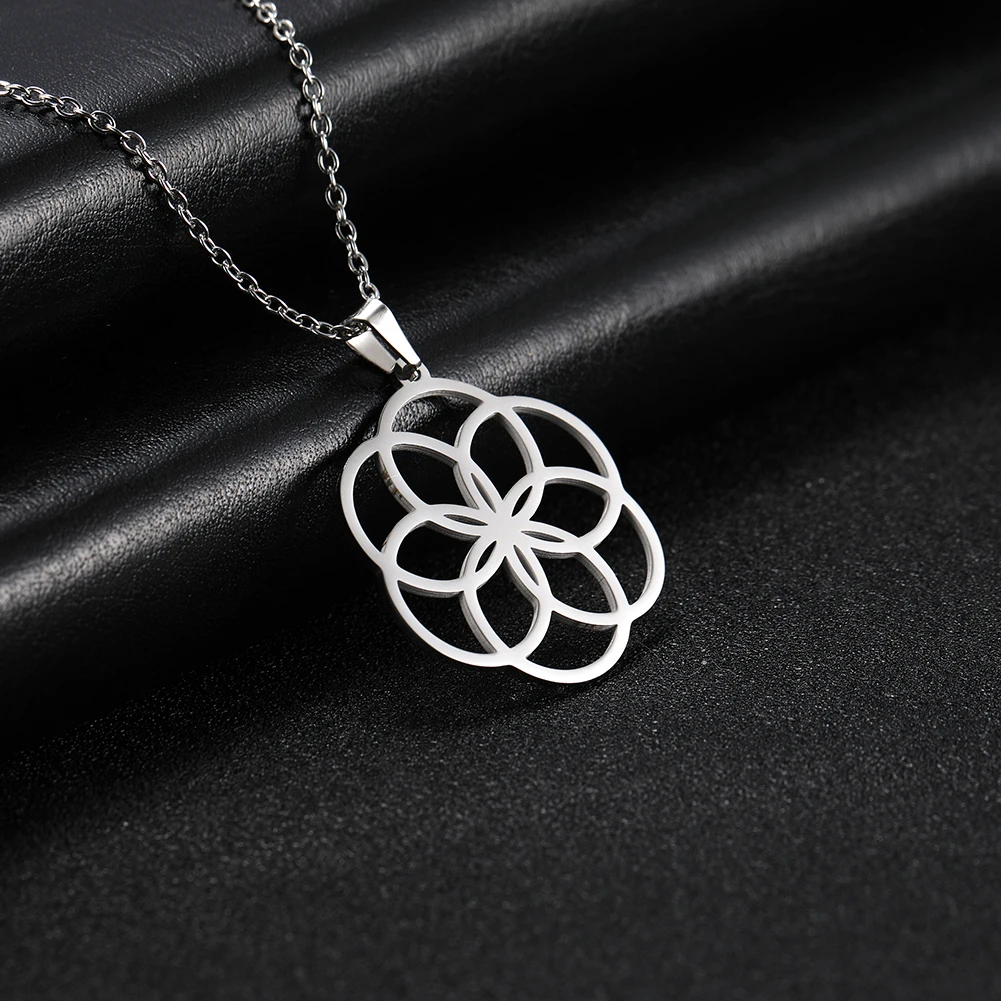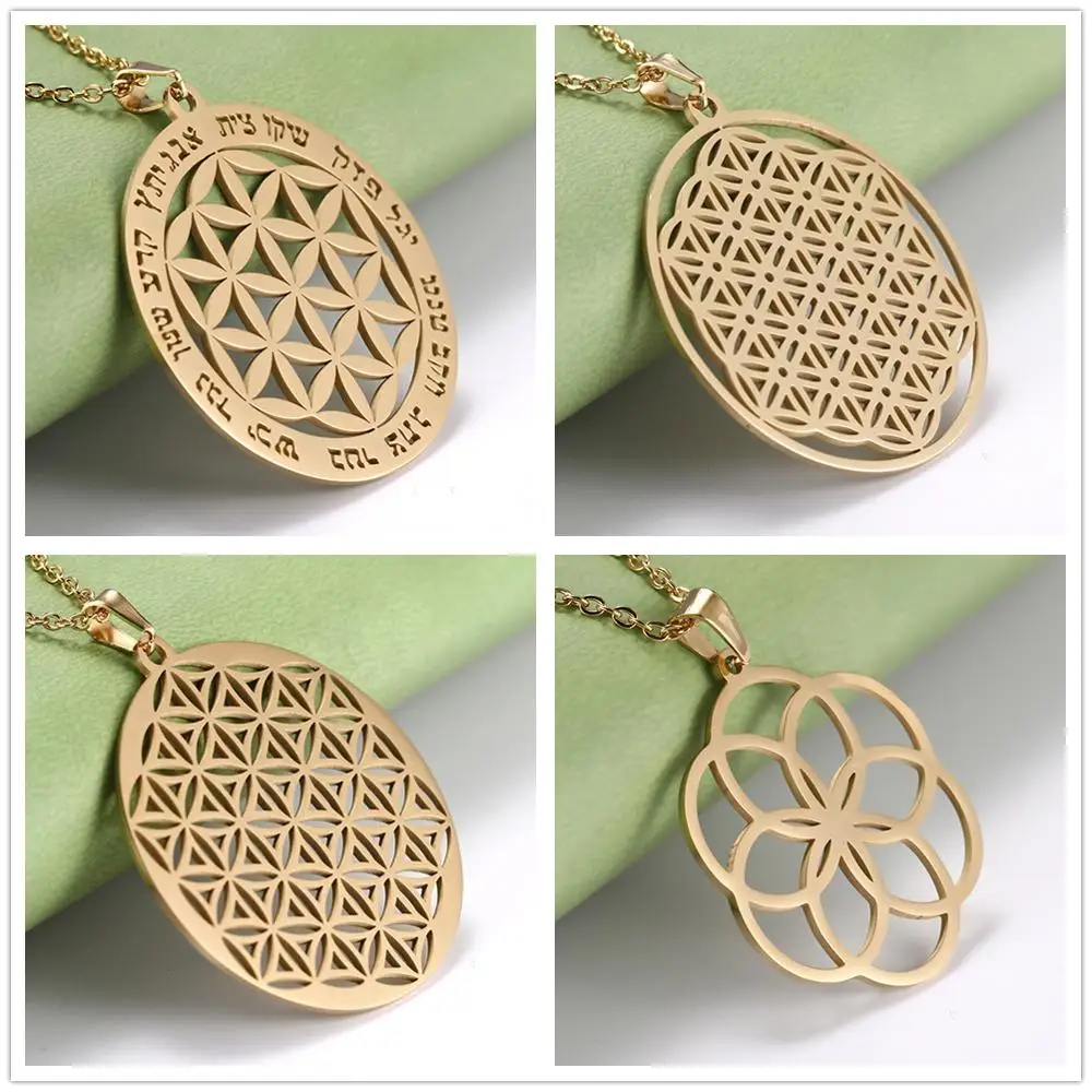 Ожерелье из нержавеющей стали, с изображением цветов жизни, мандала, руны, буддийские украшения, Сакральная Геометрия