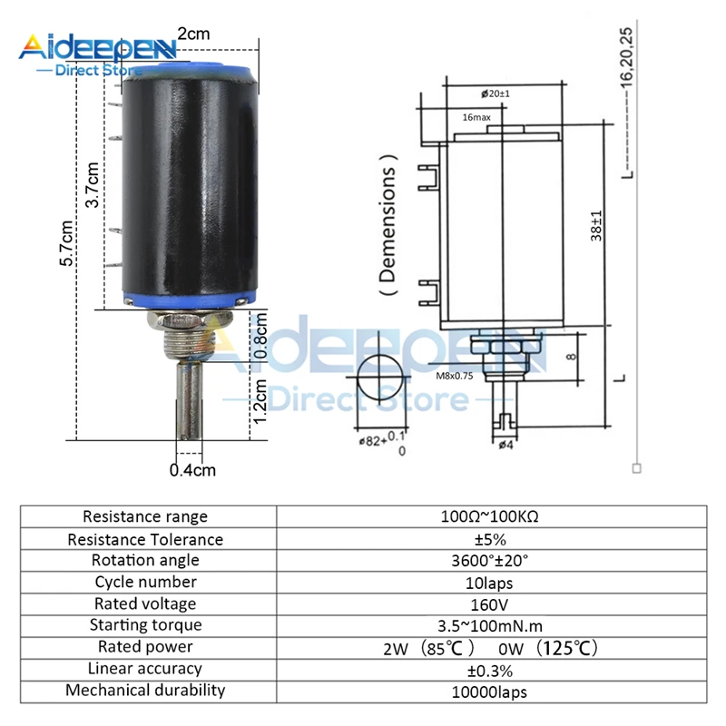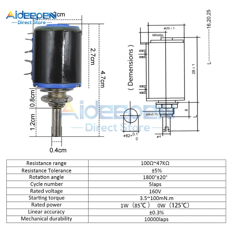 WXD3-13-2W WXD3-12-1W 100/200/220/470/680 Ом 1K/2,2/3,3/4,7/5,6/6,8/10/22/33/47/68/100K Ohm вращающийся проволочный потенциометр