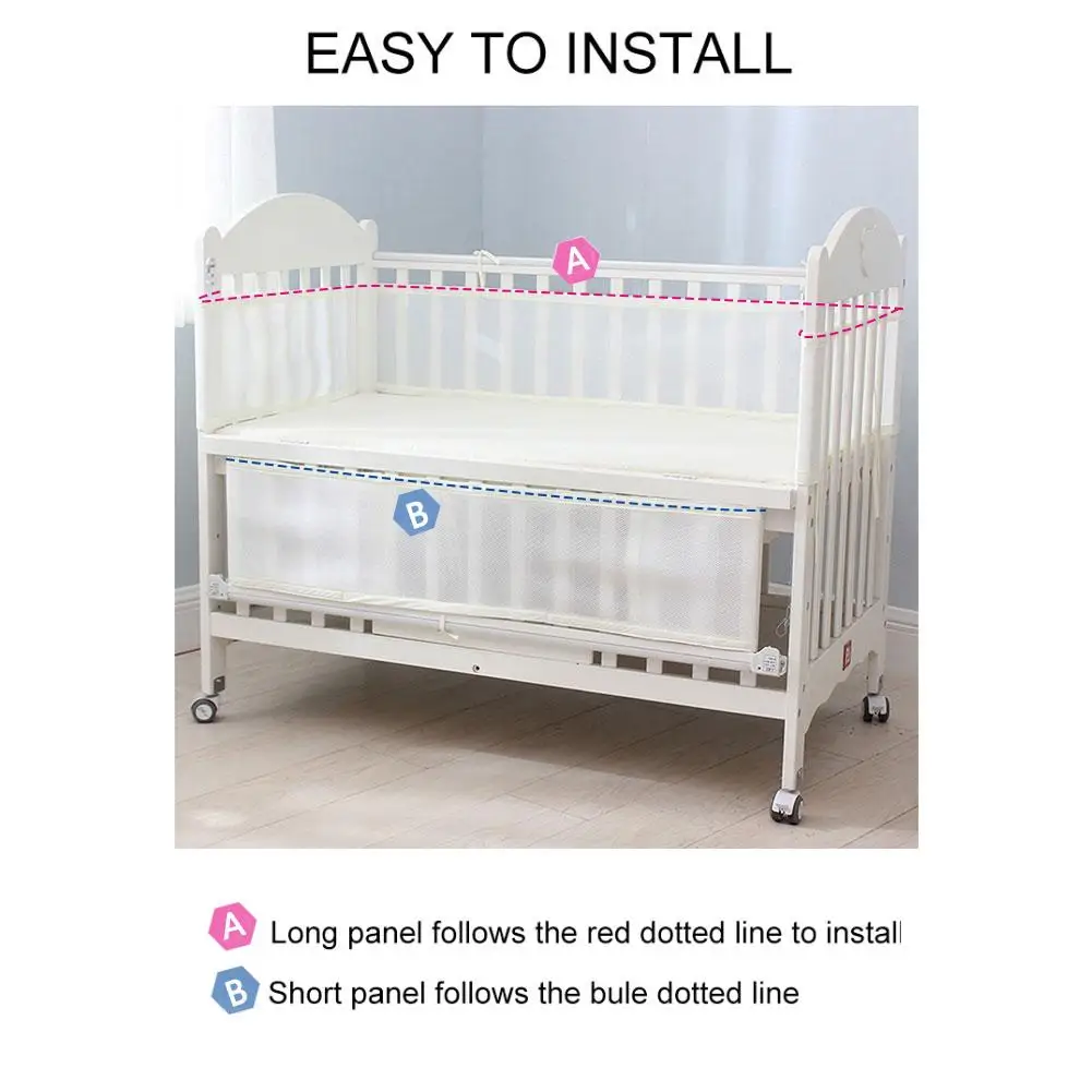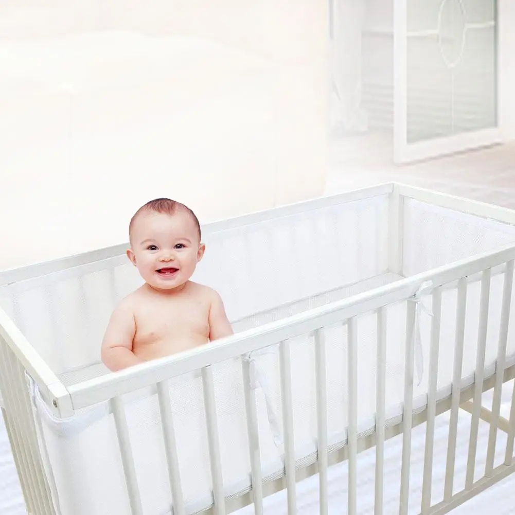 Дышащая и безопасная подкладка для кроватки может не дать вашему ребенку удариться о голову и застревать ноги. Самое главное, что он дышащий и безопасный! Он используется для круглогодичного использования, для детской кроватки.