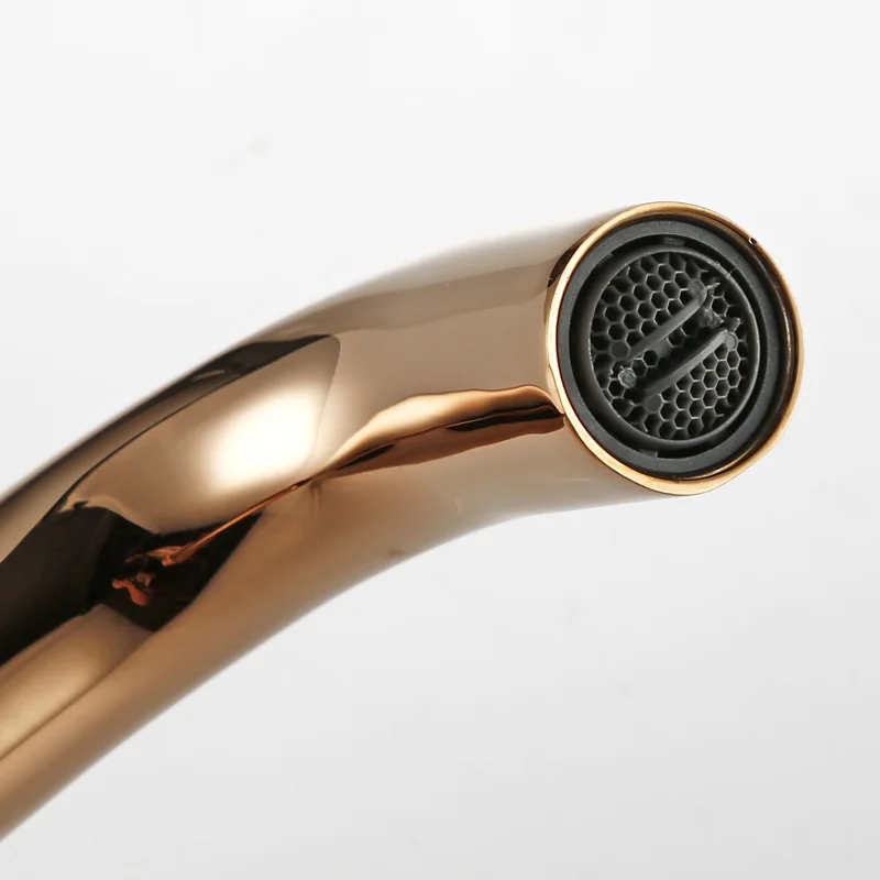 Smesiteli 360 градусов Поворотный кухонный кран из твердой латуни двойное отверстие одна ручка розовое золото Г-образный кухонный смеситель для умывальника