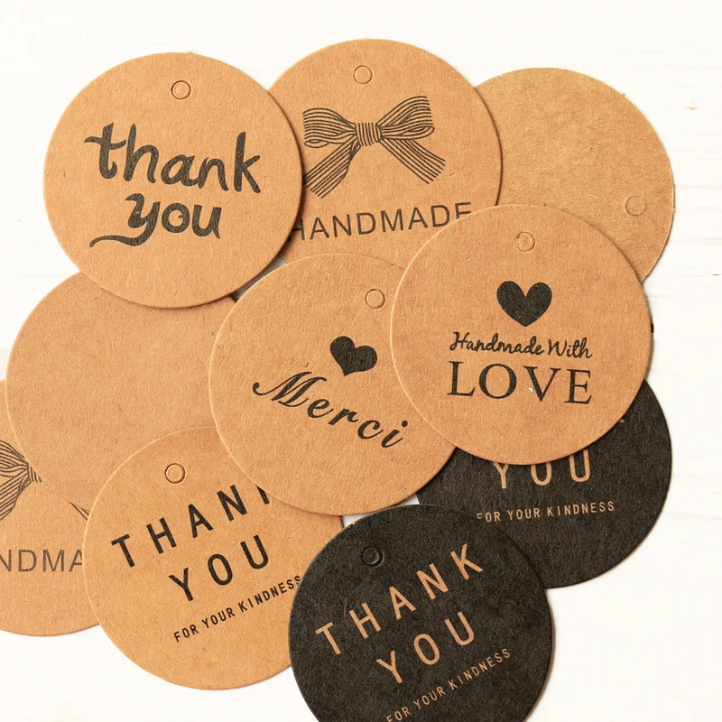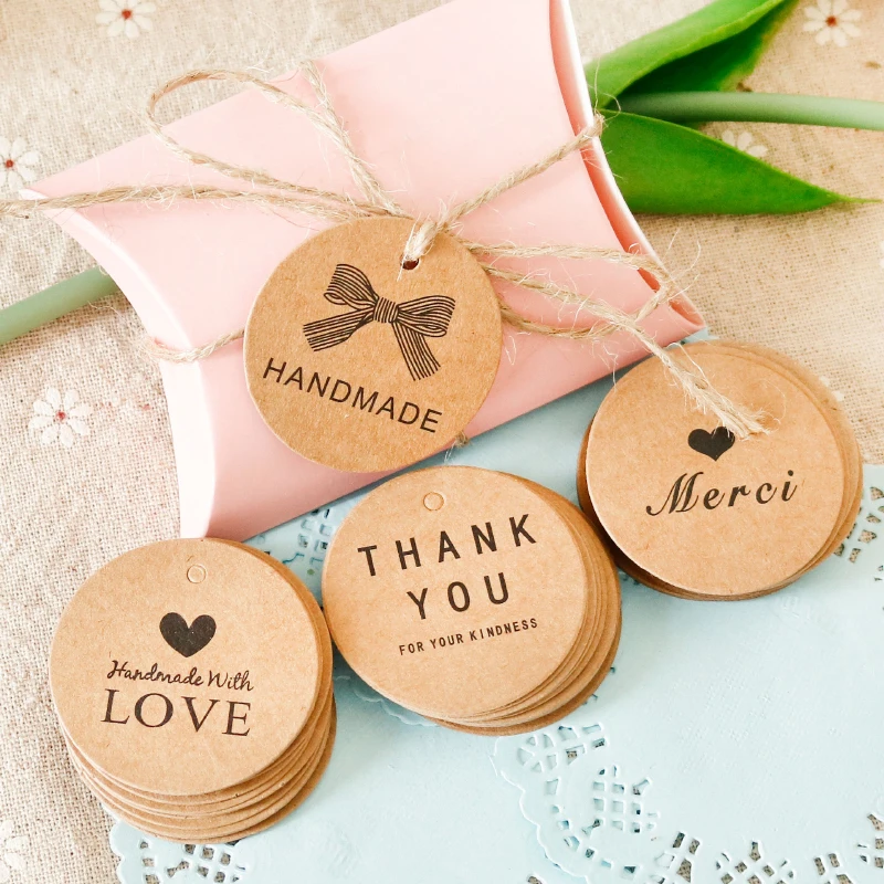 100 шт. 4 см круг ручной работы с любовью спасибо, ярлык для подарка своими руками круглые Бумага бирка упаковочная этикетка декоративные бирки