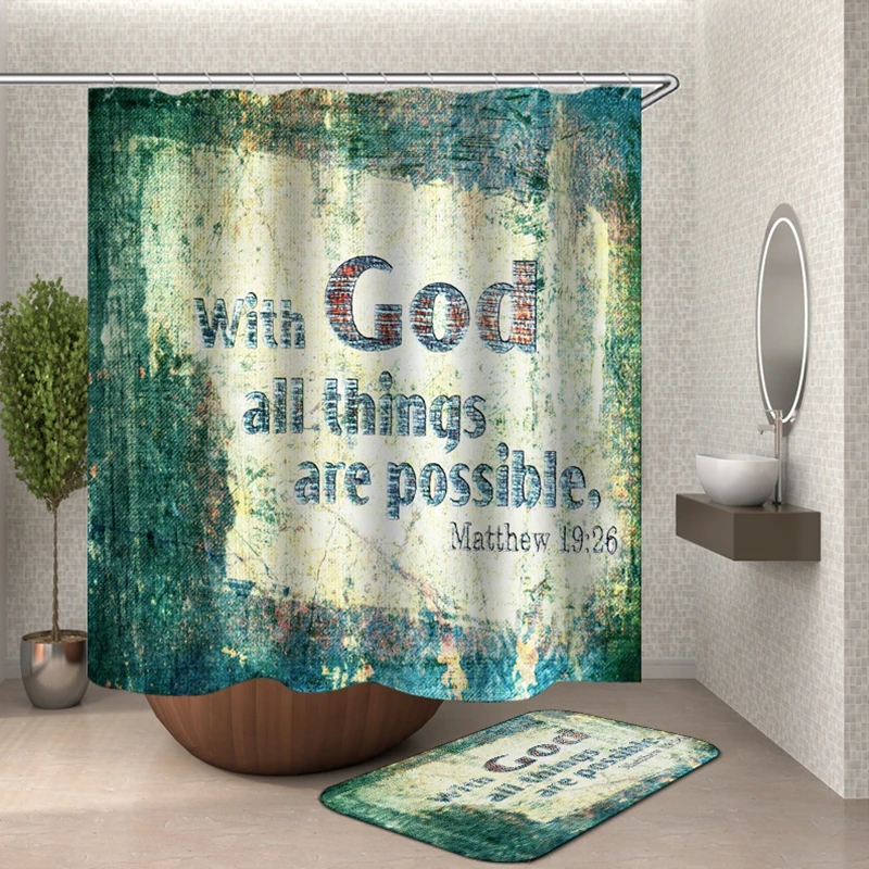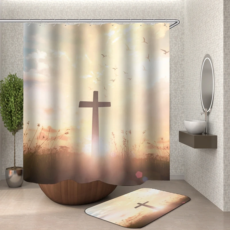 Занавеска для душа, с крючками, водонепроницаемая, с ковриком