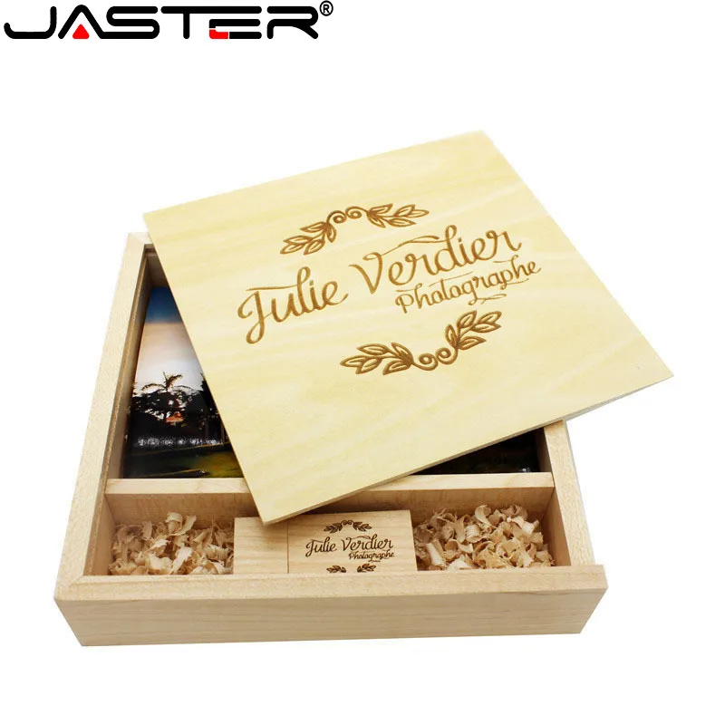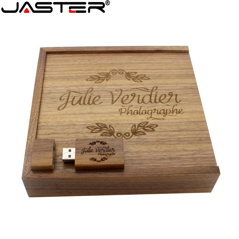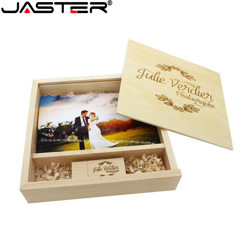 Флэш-накопитель JASTER 2,0 с бесплатным логотипом деревянный фотоальбом USB + коробка 64 Гб ореховая карта памяти 32 Гб 16 Гб фотография свадебный подарок флэш-накопитель