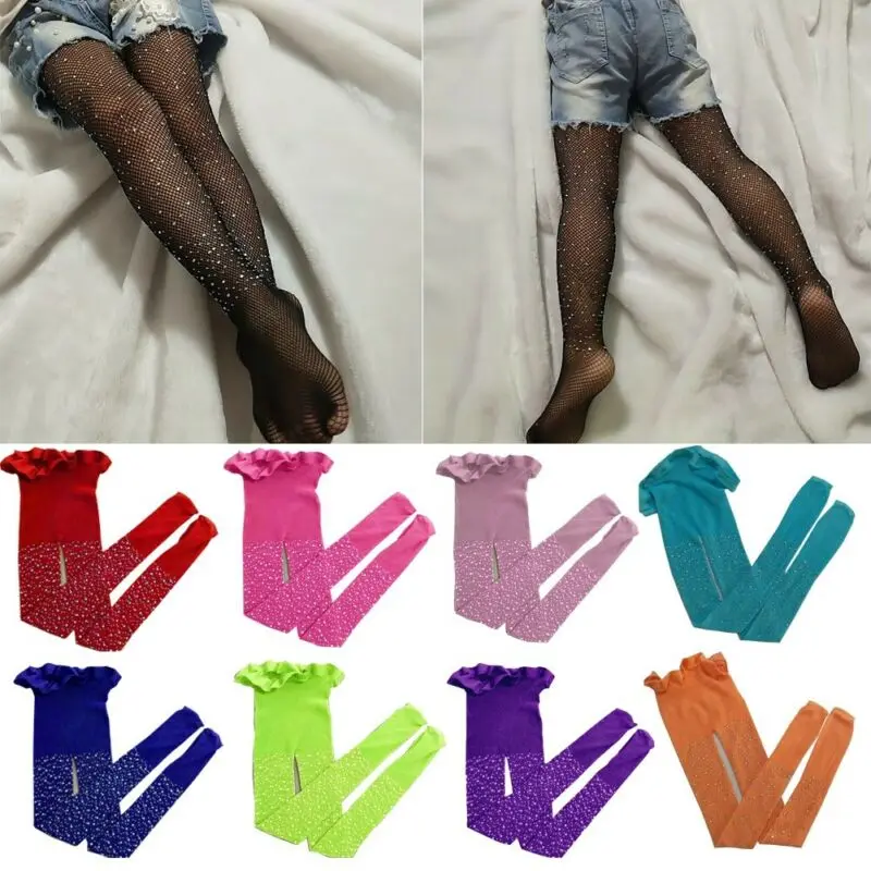 Стильные колготки с рыбьей сеткой (Искусственный драгоценный камень) для детей