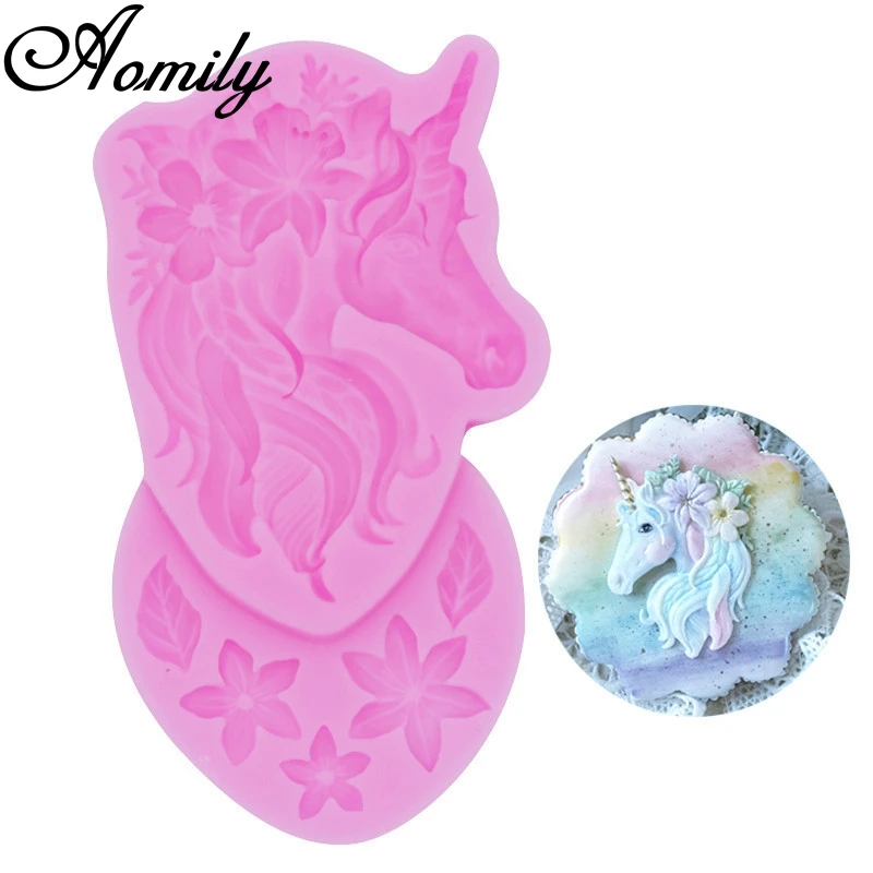 Aomily 3D силиконовая форма для мастики на день рождения с изображением единорога