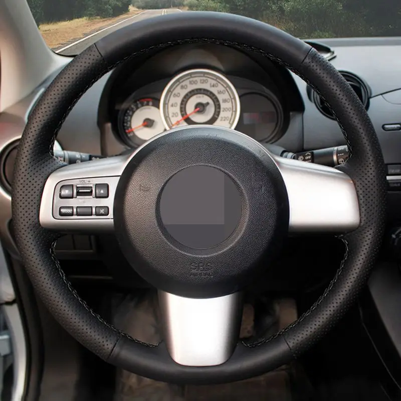 Сшитая вручную черная искусственная кожа из мягкой искусственной кожи Чехлы рулевого колеса автомобиля для Mazda 2 2014 2013 2012 2011 2010 2009 2008