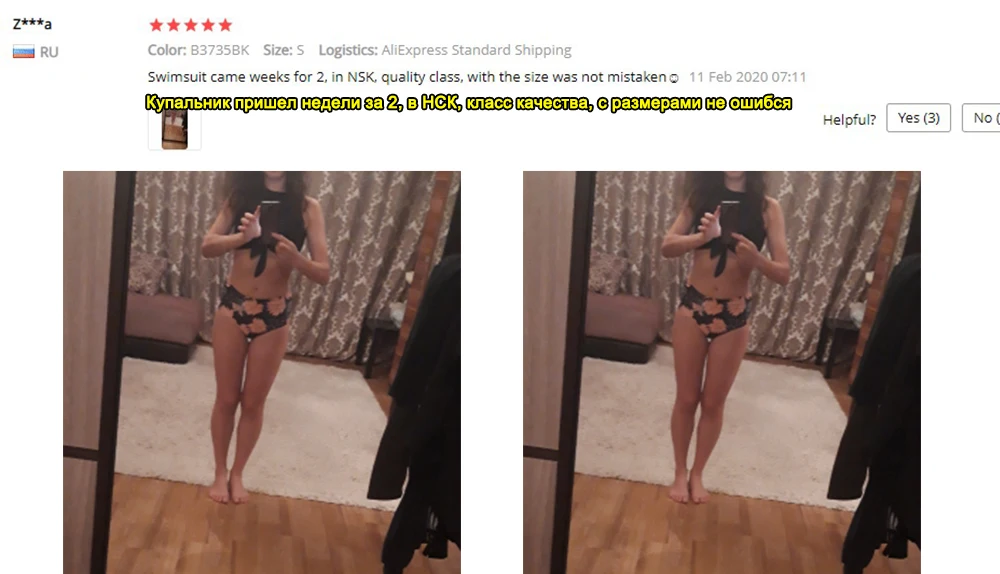 Доставка до Красноярского края, месяц. Трек отслеживался. Купальник, в полном соответствии, с описанием товара продавцом. Упакован в пакет с зип. замком, при распаковке запах новой вещи. Качество пошива на высоте. Всё шовчики оверложены. Топ-бюст, со съёмными поролоновыми вкладышами. Покупала дочери на 85/75/97, рост 168 см, размер М. Дополню отзыв после примерки (живёт не со мной). Мне купальник понравился, теперь главное чтобы подошёл размер. Я заказала этот размер опираясь на отзывы покупателей.
