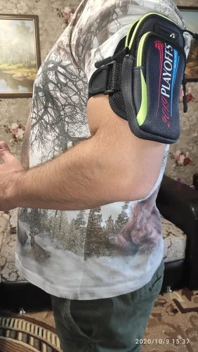 Продавца рекомендую!!! Описание товара точное, отдел под телефона идеально на диагональ моего телефона. Мягкая, дышущая ткань, на руке не вызывает дискомфорта. Длина липучки 28см., пошито качественно, слегка имеется запах, но это не помеха.♀️♀️♀️