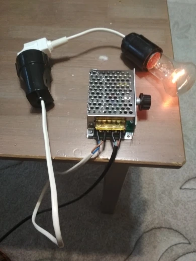 Пришло за 3 недели в Ростове-на-Дону. В общем и в целом, изделие нормальное. Есть 2 нюанса: 1) сразу нужно разбирать и симистор на радиатор сажать на тепло - отводящую пасту, типа ктп-8, с завода этого нет; 2) не очевидно на первый взгляд, где вход, где выход, но на самом деле на печатной плате, с обратной стороны есть маркировка, китайскими иероглифами, пришлось подучить китайский и понять, что 1 и 2 выводы это выход, а 3 и 4 вход электропитания. На жёлтой защитной панели винтовых коем, цифровая маркировка есть. Это из небольших недостатков - нюансов, может кому-то будет полезно. На фотографиях, черный кабель - вход, белый - нагрузка, для примера и наглядности нагрузил 60 Вт лампой накаливания. Брал для регулировки температуры микро - паяльника, для этих целей - самое то, тем более со скидкой, за 240 руб. Всем удачи!