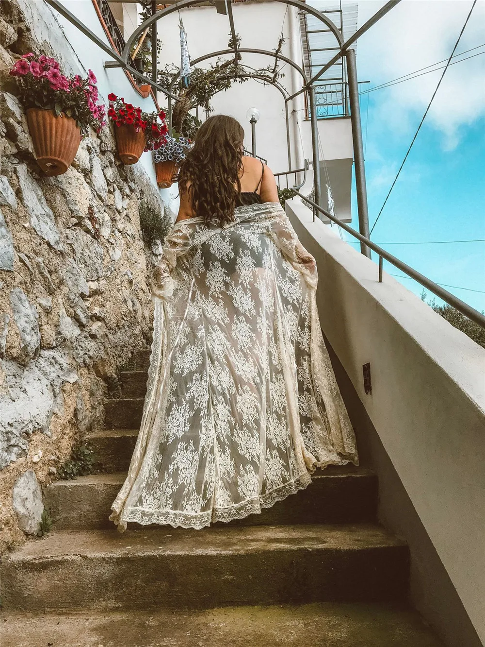 RoRoDox бикини-накидка на пляж саронг кружевное длинное кимоно кард...