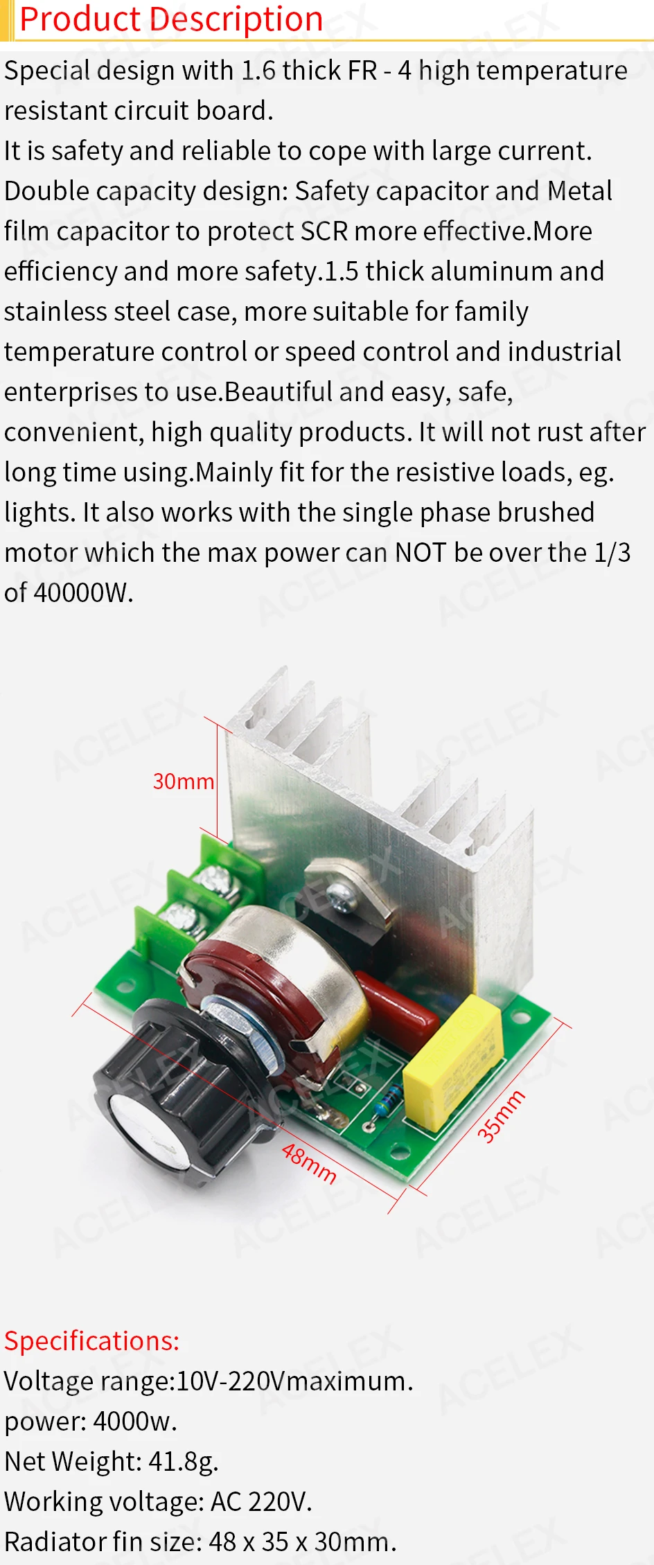 Электронный регулятор напряжения, 4000 Вт, регулятор скорости, плата управления, регулятор, диммер, модуль высокой мощности, 220 В переменного тока, резистивная нагрузка