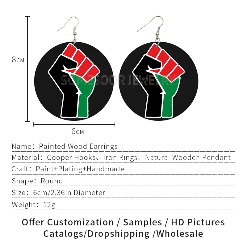 Кулак SOMESOOR Black Forever сила, коллекции, африканские деревянные висячие серьги, африканские поговорки, дизайнерские украшения для женщин, подарки