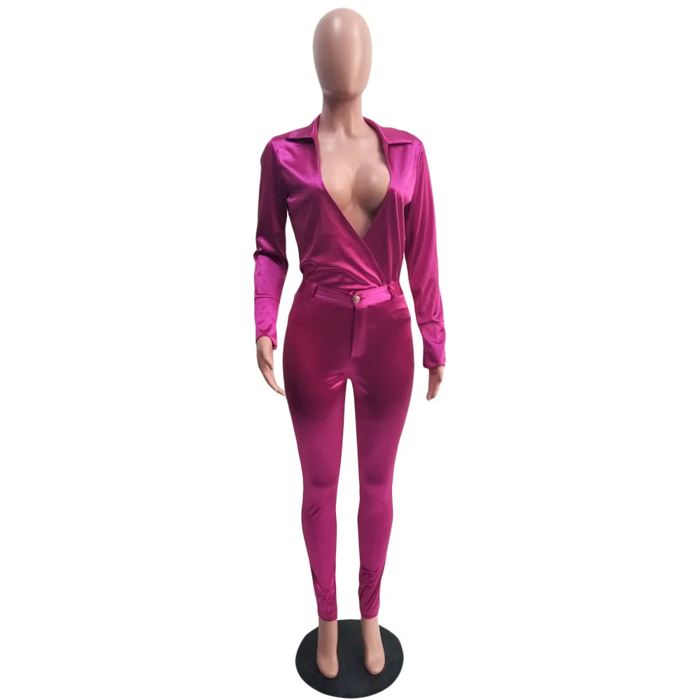 Модный однотонный Блейзер, боди + длинные штаны, комплект из двух предметов, спортивный костюм, Женская Клубная одежда, осенне-зимняя одежда