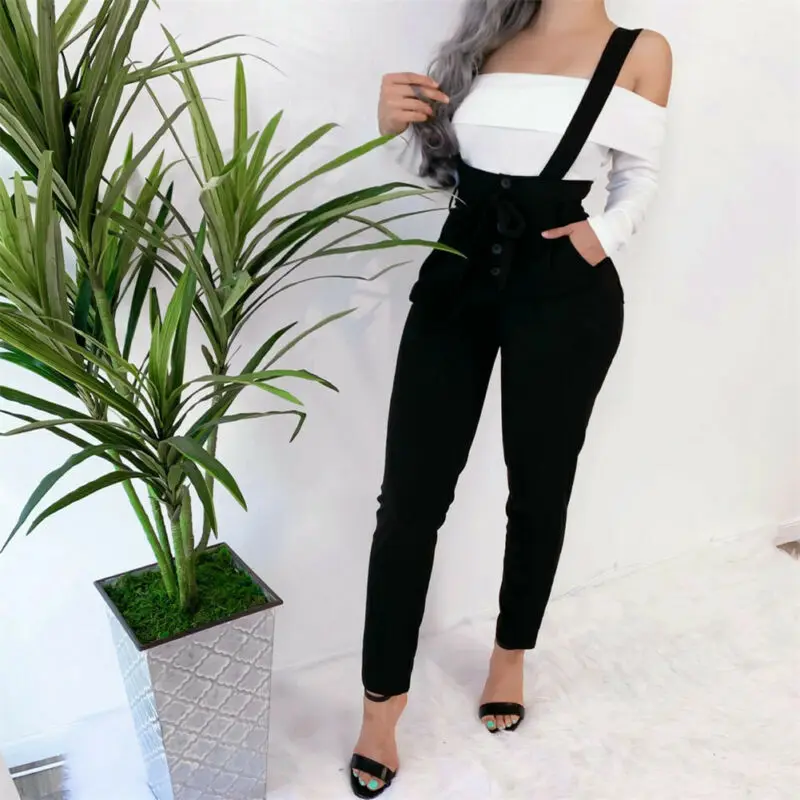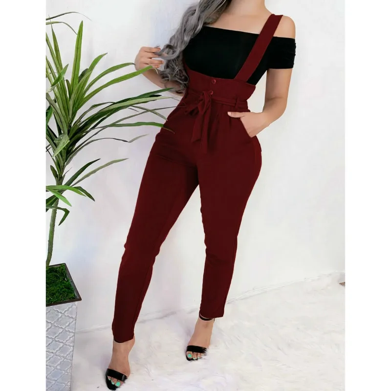 Женский комбинезон с высокой талией, с карманами и поясом, длинные брюки, Модный Узкий комбинезон для женщин